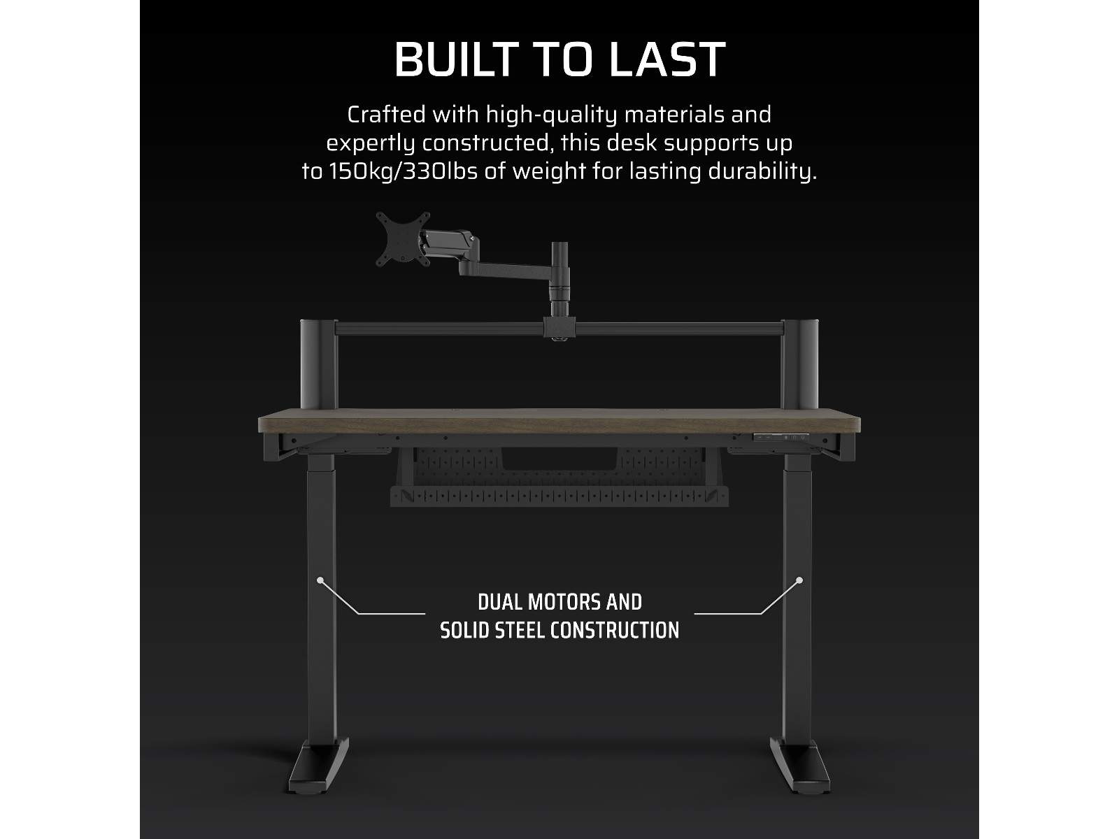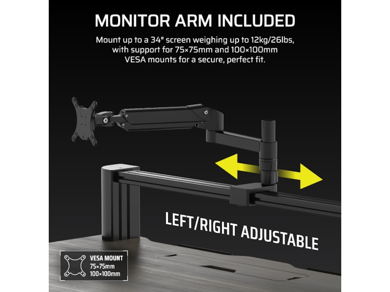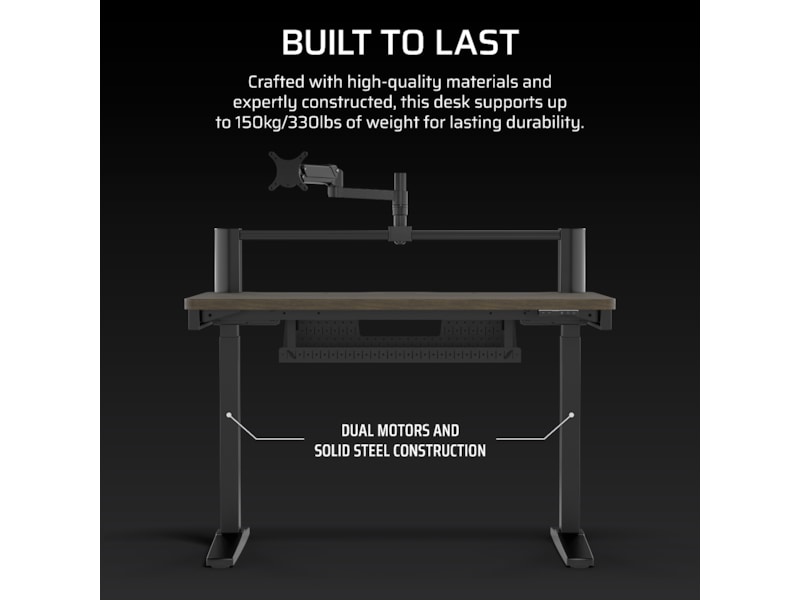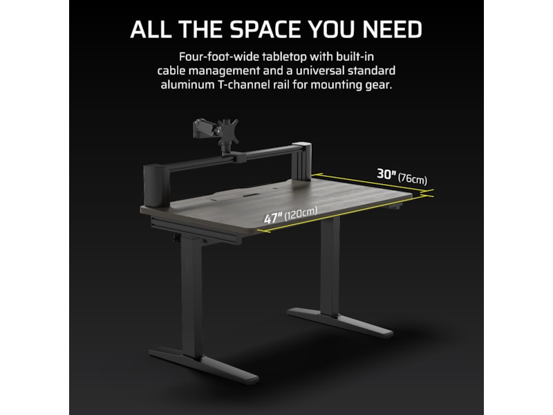 Transformér dit arbejdsområde med det højdejusterbare CORSAIR Platform:4 Elevate Desk, der har en 4-fods bred bordplade, inkluderet skærmarm, indbygget USB-strøm og et modulært T-skinne-system.