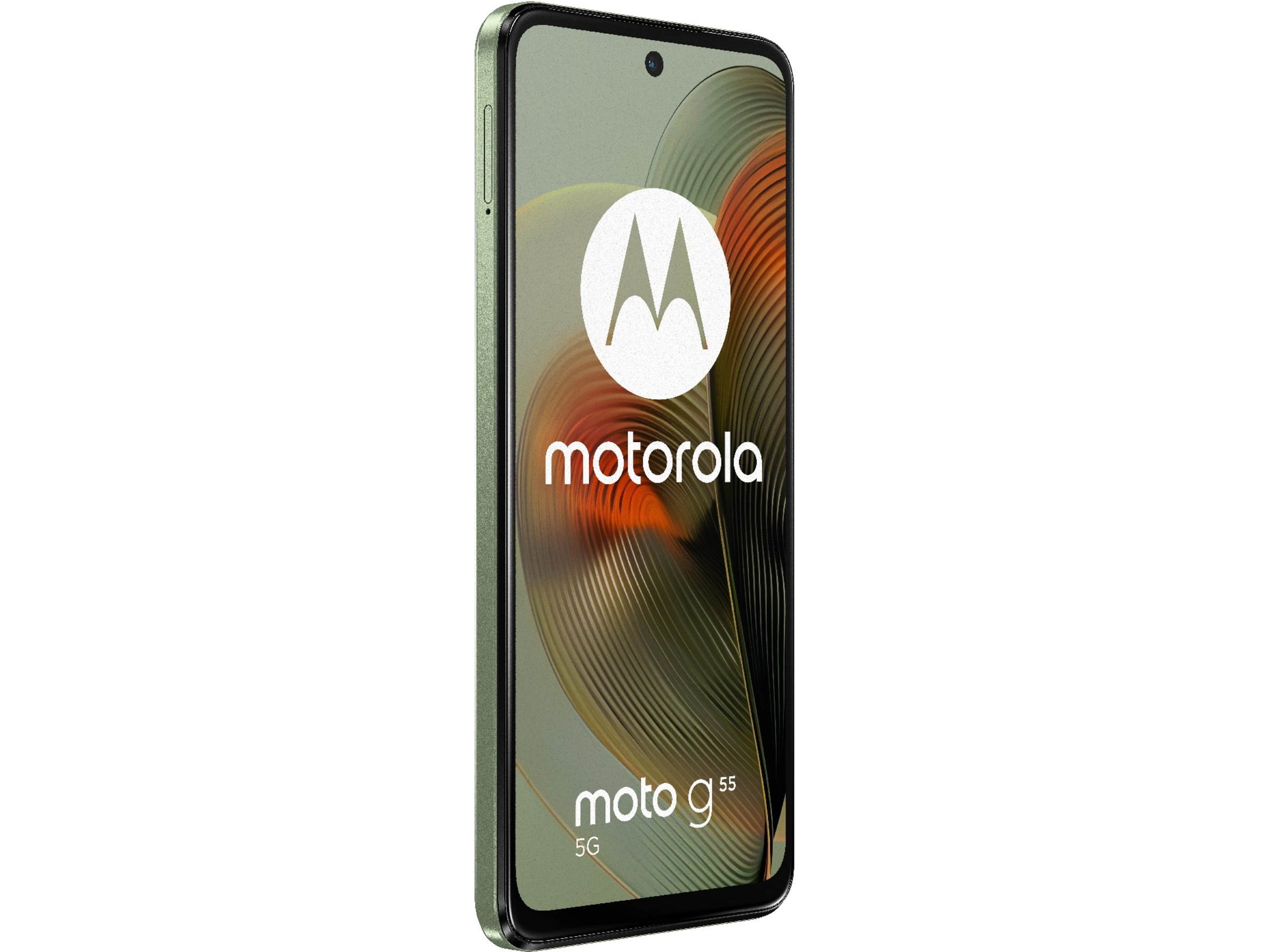 Vi introducerer telefonen med underholdning i dens DNA. Ny moto g55 5G. Bring shows, film og spil til live på dens fordybende 6,49" FHD+ 120Hz-skærm. Hør lyd fra alle retninger med stereohøjttalere og Dolby Atmos®. Tag utroligt klare billeder og jævnere videoer med et 50 MP kamerasystem med optisk billedstabilisering (OIS). Og skiller sig ud med et iøjnefaldende design, inklusive muligheder i blødt vegansk læder. Med moto g55 5G kan du bingewatche nonstop takket være et langtidsholdbart batteri og hurtig opladning. Hold flere af dine favoritter med masser af indbygget opbevaring. Og slip underholdning løs ved 5G-hastighed med en kraftfuld octa-core processor. moto g55 5G tager underholdning til et helt nyt niveau.