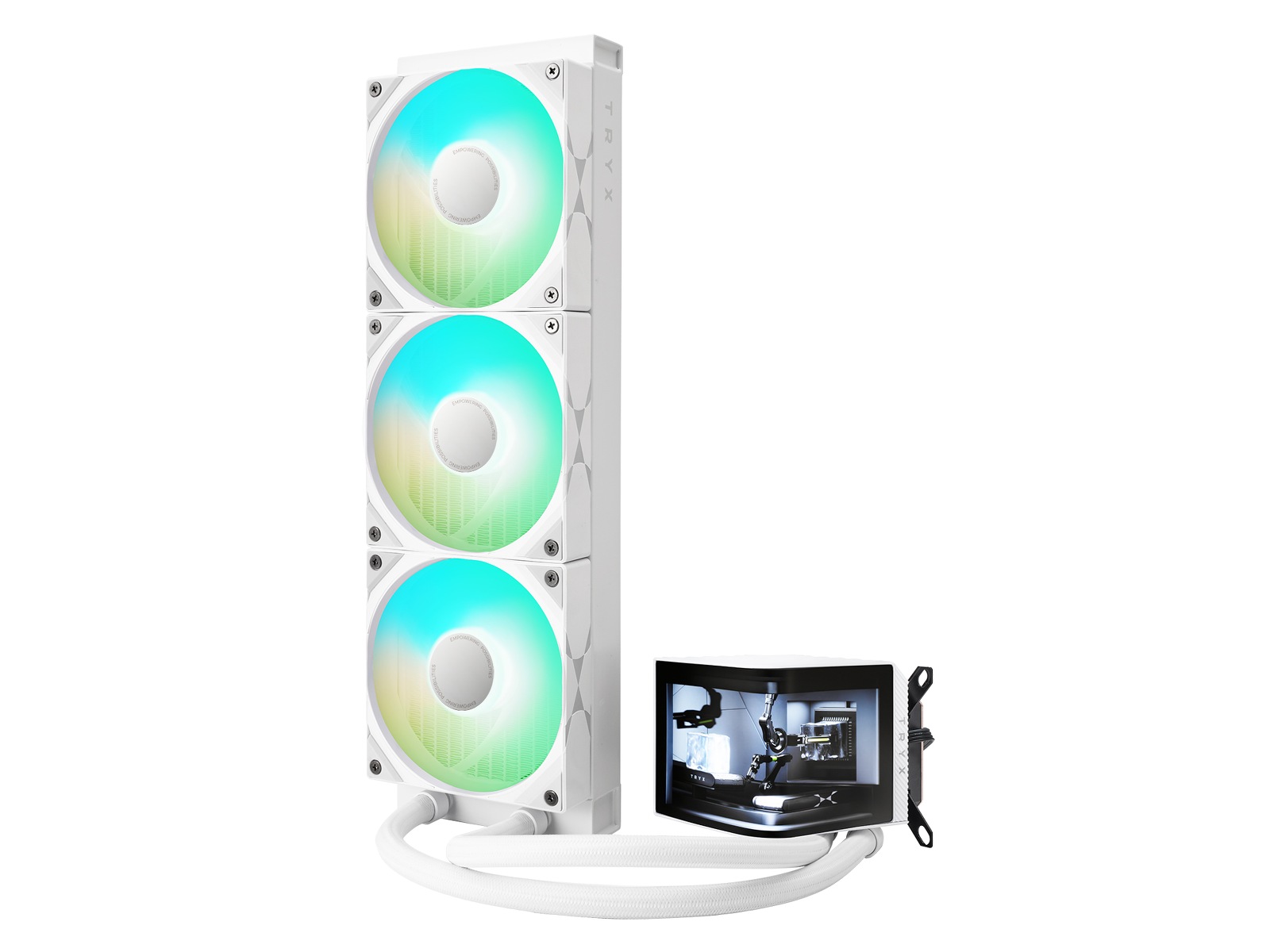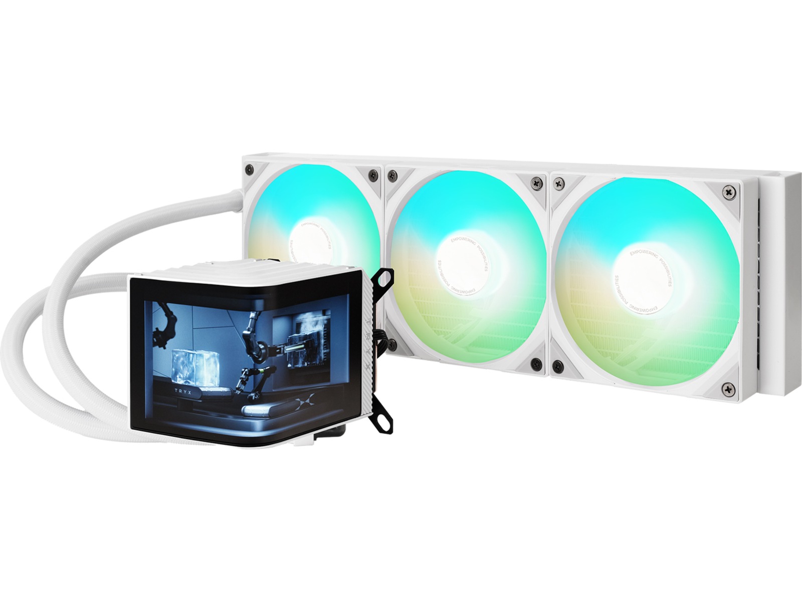 | Egenskaber | L-formet 6,5" LED skærm, ARGB fans, 2k@60Hz opdateringsfrekvens skærm, Flydende krystal polymerblæserklinger (LCP), 8. generation Asetek-pumpe, Anamorf 3D skærm, Integrerede anti-vibrationspuder, Rør med hylster (400 mm), Split-screen display |