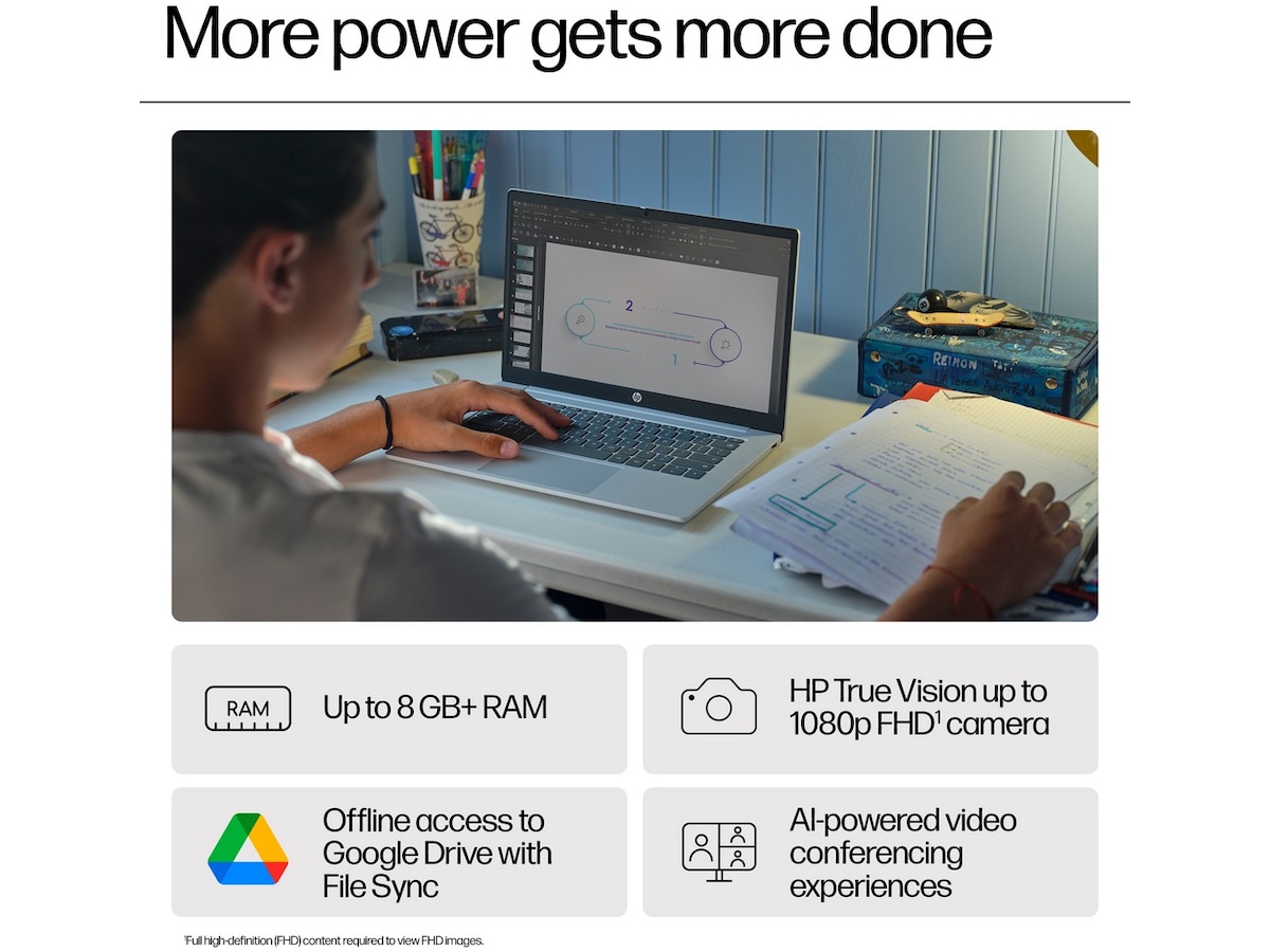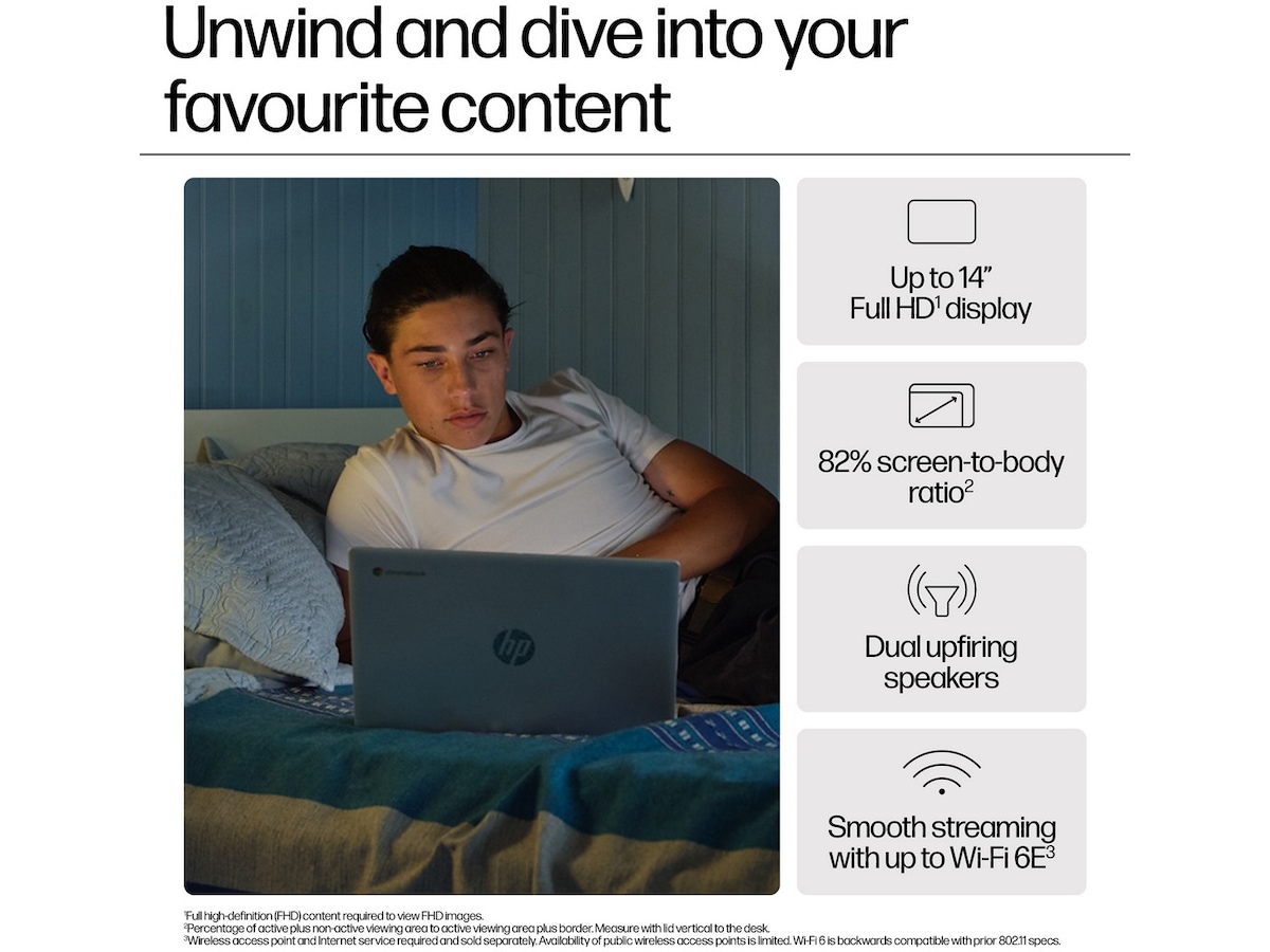 Hold produktiviteten oppe og problemerne nede med HPChromebook 14", derindeholder ydeevne fra op til en Intel® -processor og det brugervenlige Chrome OS. Få mere fra hånden med masser af hukommelse, hurtigere hastigheder og trådløs forbindelse , og få hurtigere opstart og lang batteritid med HP Fast Charge , så du kan være forbundet hele dagen.