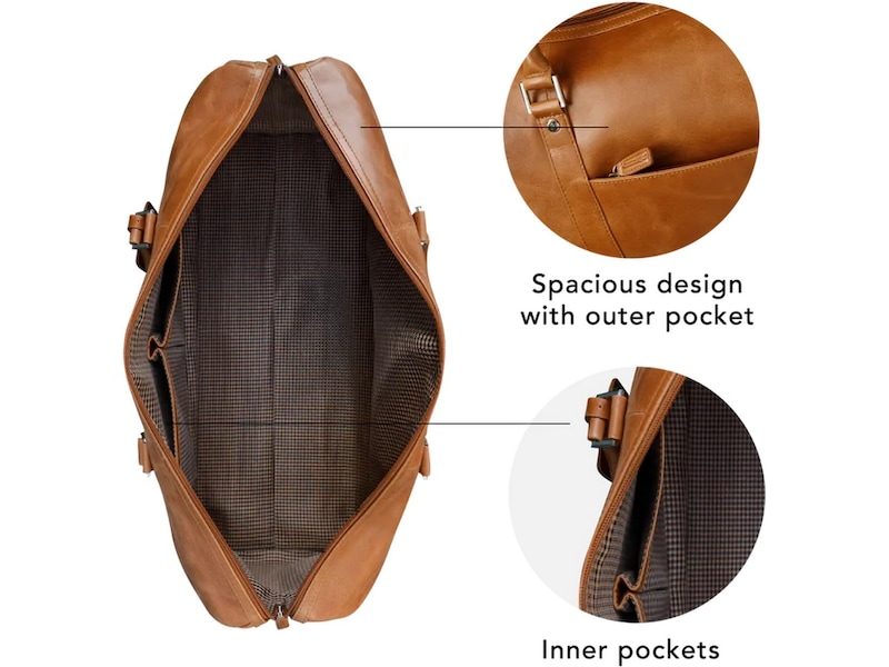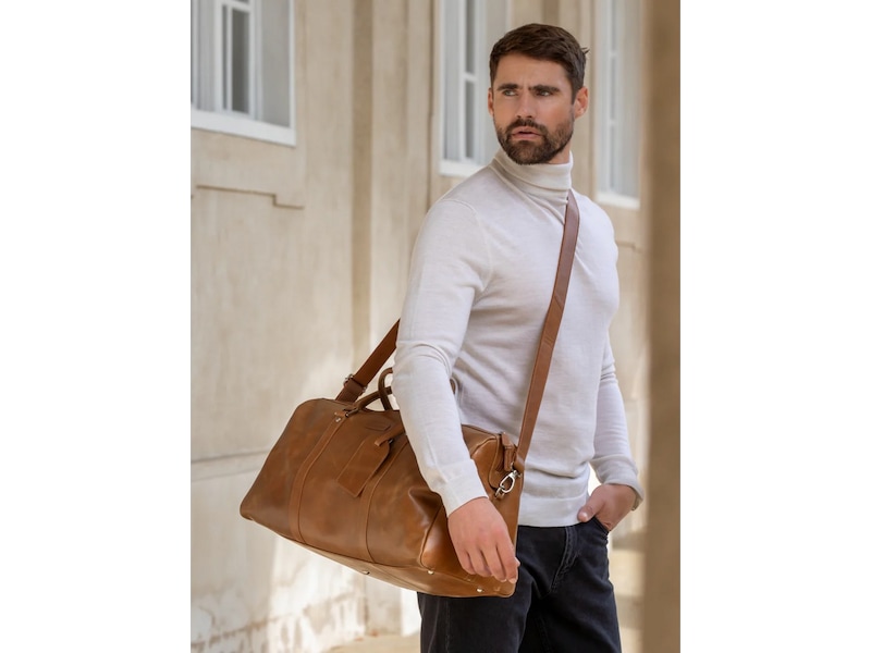 Kastrup is a functional and spacious weekender bag in a classic design - the perfect travel buddy. The bag is handmade from durable full-grain leather that oozes exclusivity. The main compartment has plenty of room for clothes and other necessities and additional smaller pockets for easy organization.