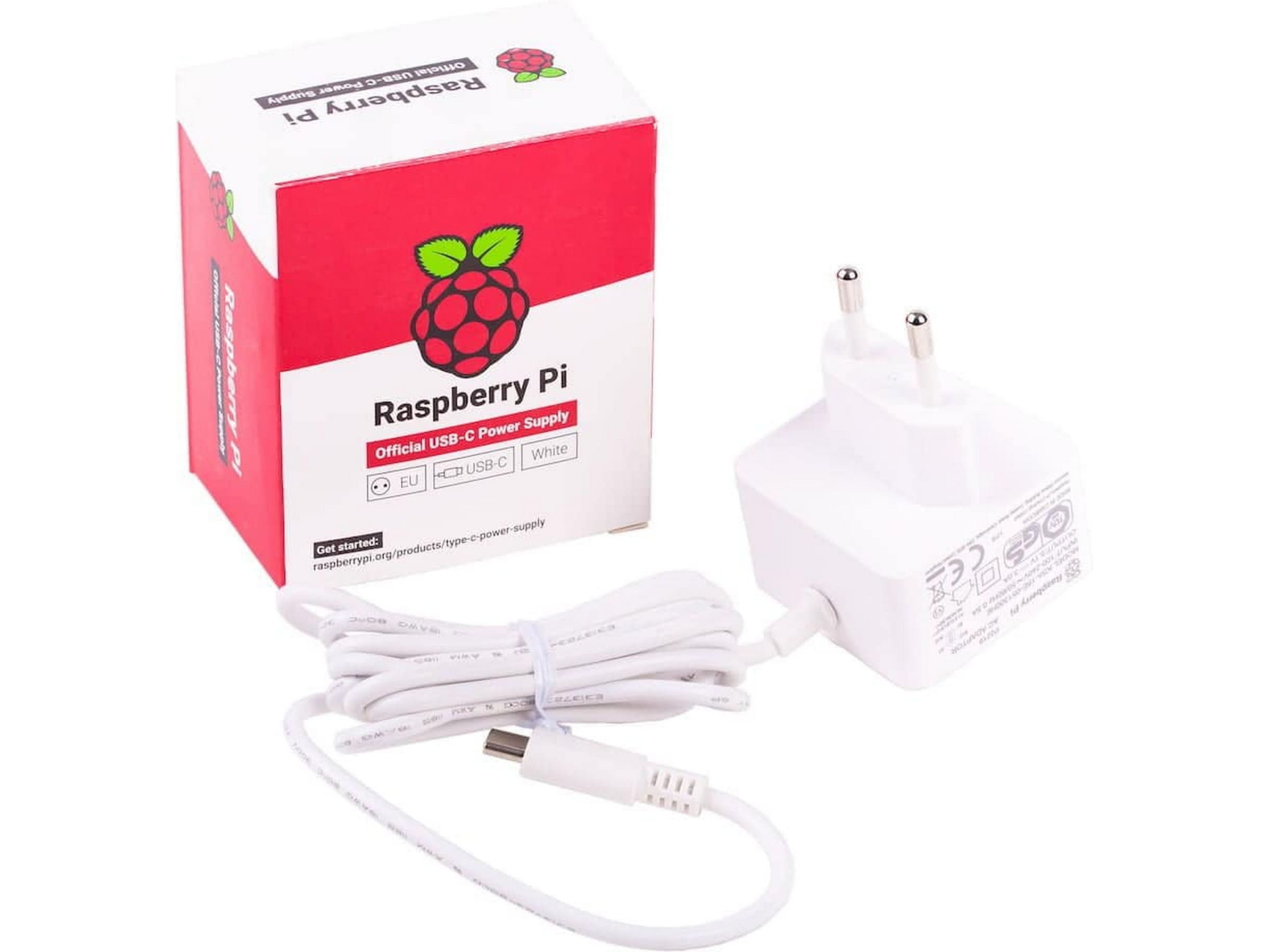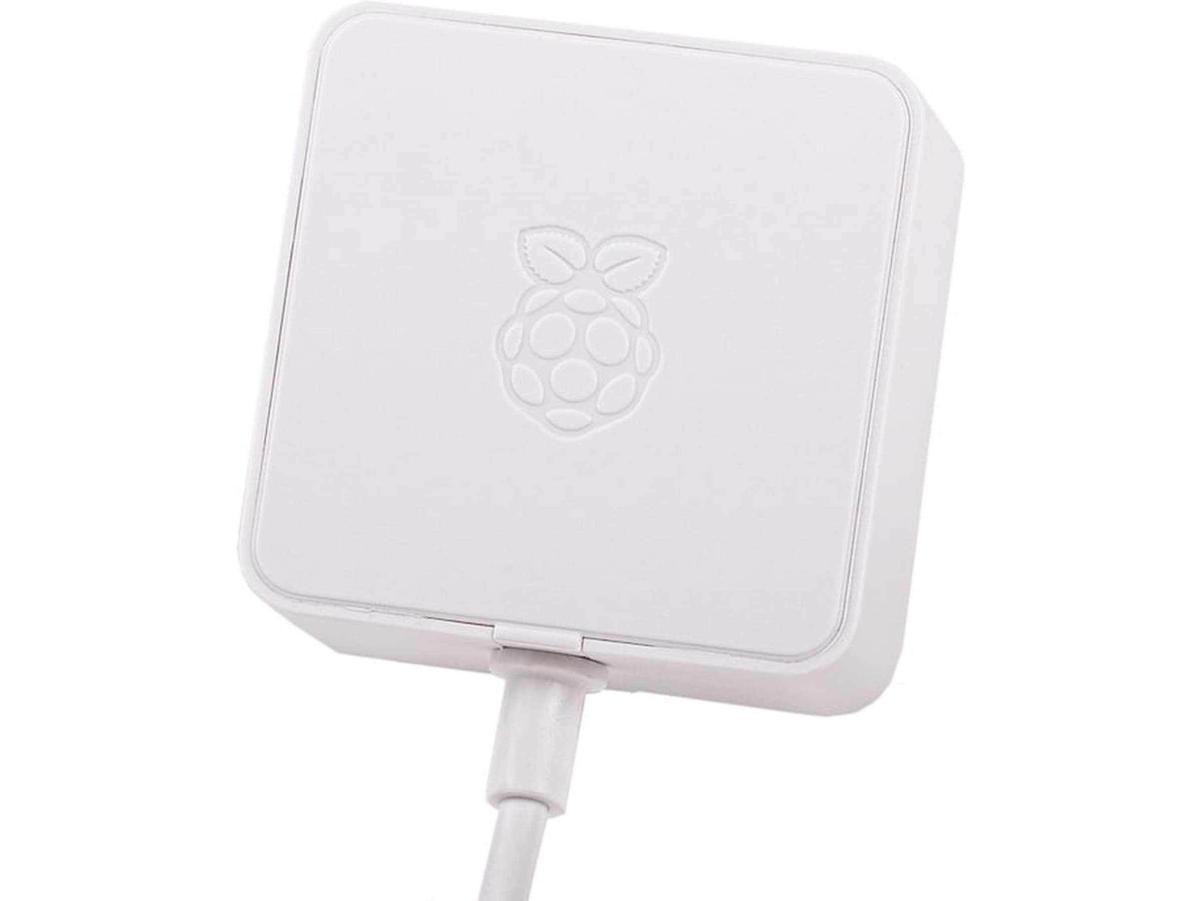 Den officielle Raspberry Pi USB-C strømforsyning er designet til at drive den nyeste Raspberry Pi 4 Model B.