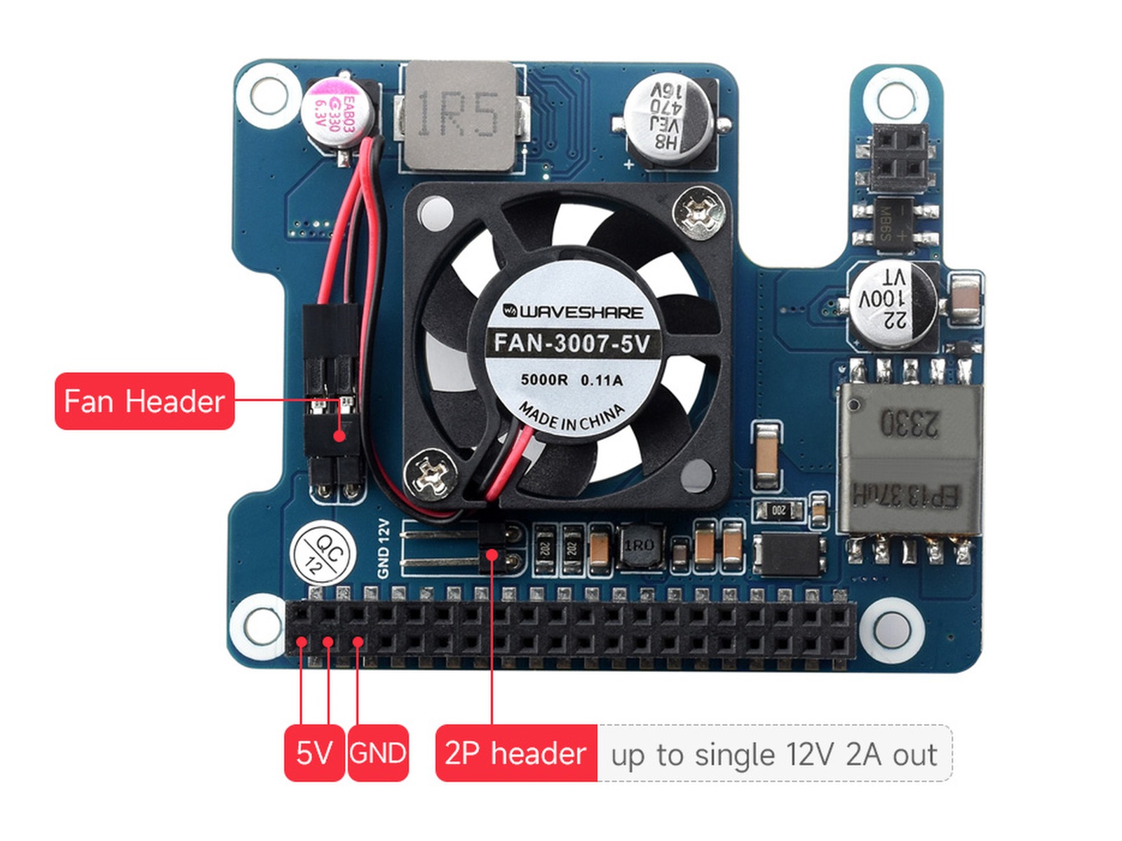 - Standard Raspberry Pi 40PIN GPIO-header, understøtter Raspberry Pi 5 / CM 5