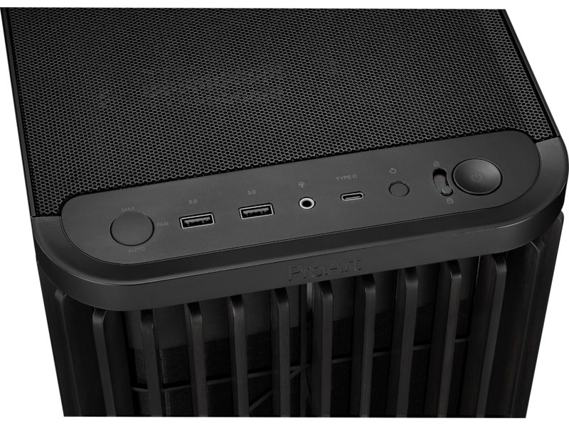 ProArt PA401 Wood Edition præsenterer en træfrontramme, der skaber en karakteristisk, elegant stil samtidig med at fremme bæredygtighed. Det anvendte træ er certificeret af Forest Stewardship Council (FSC), og er færdigbearbejdet med en seks-trins proces. Kabinettet har også optimal indbygget køling med to 160mm frontblæsere og én 120mm bagblæser, sammen med en integreret blæserhub, der muliggør optimal luftstrøm.