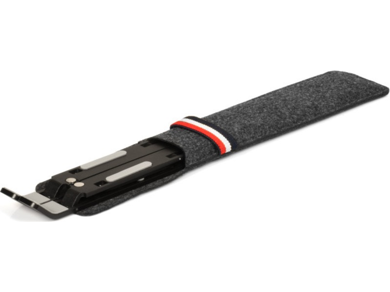 Dens struktur er foldbar, ultratynd og let for maksimal bærbarhed. Der følger en lomme med stativet.