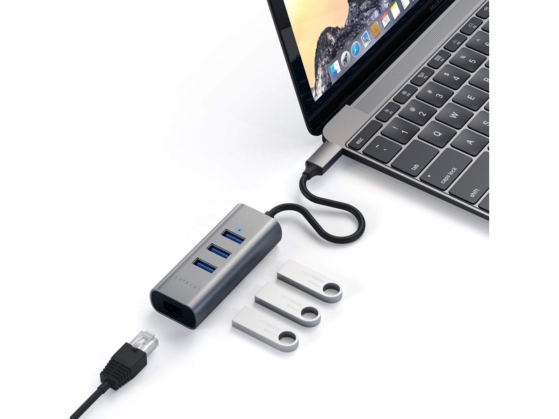 Satechi Type-C 2-i-1 USB 3.0 Aluminum 3 Port Hub og Ethernet Port er en hurtig netværksløsning for laptop- eller desktopbrugere. Det gør det muligt for dig at oprette forbindelse direkte til dit netværk via USB-porten og eliminerer besværet med at adskille din computer. Adapteren giver dig mulighed for øjeblikkeligt at oprette forbindelse til et 10/100/1000 Mbps netværk fra en ledig USB-port på din computer.