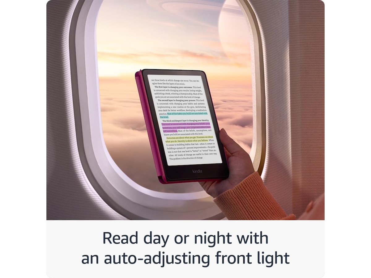 Read in the brightest sunlight or late into the night with an auto-adjusting front light and glare-free display. Adjust the display from a white light to a warm amber.