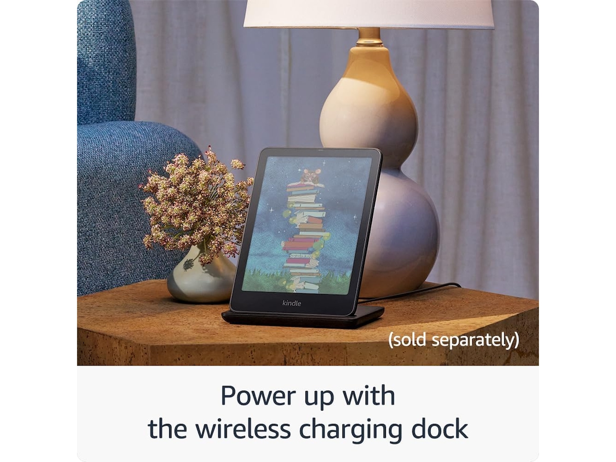 A single charge via USB-C lasts up to 8 weeks. Or power up with the Made for Amazon Wireless Charging Dock (sold separately).