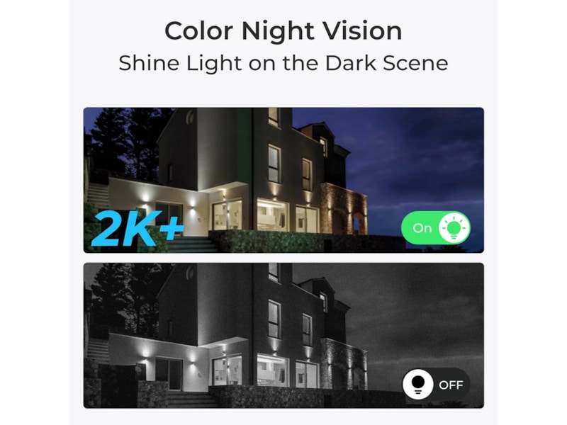 - Høyoppløselig overvåking: Opplev sylskarpe detaljer med 2K-video, uansett tid på døgnet.