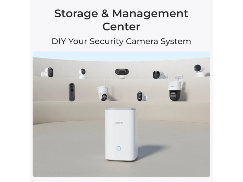 Reolink Home Hub kobler til opptil 8 kameraer (unntatt 4G-kameraer), noe som gjør det enkelt å administrere flere kameraer samtidig fra en enkelt, sentral hub. Denne huben er ideell som lagrings-, alarm- og administrasjonssenter for gjør-det-selv-kamerasystemet ditt.