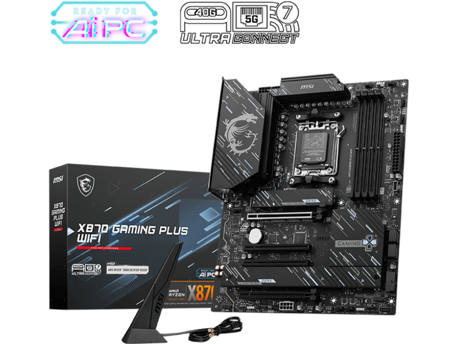 X870 GAMING PLUS WIFI er designet med holdbare komponenter for at give en fantastisk gaming oplevelse. Designet med Wi-Fi 7 og 5G LAN, højhastigheds USB4, PCIe 5.0-løsninger, supplerende PCIe-strøm og eksklusive EZ DIY-funktioner, er det klar til 24/7 non-stop gaming af AMD Ryzen 9000 serie processorer.