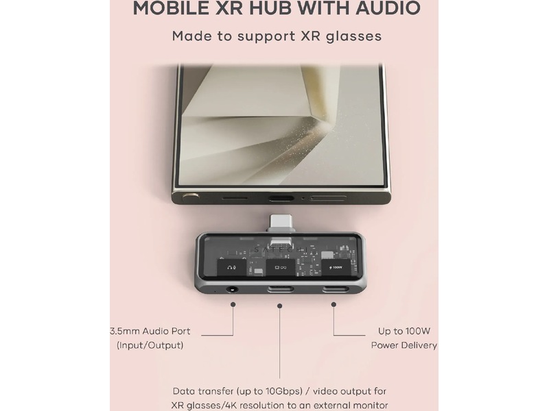 Embrace the full potential of XR technology - enhance your mobile gaming, streaming, and productivity experience with the Satechi Mobile XR Hub with Audio. This sleek and versatile hub, crafted in Space Grey, delivers seamless audio integration, versatile connectivity, and ultra-fast charging for your devices. Whether you're gaming on the go or enhancing your mobile workspace, the Satechi Mobile XR Hub is designed to meet all your needs effortlessly while maintaining a compact and stylish form.