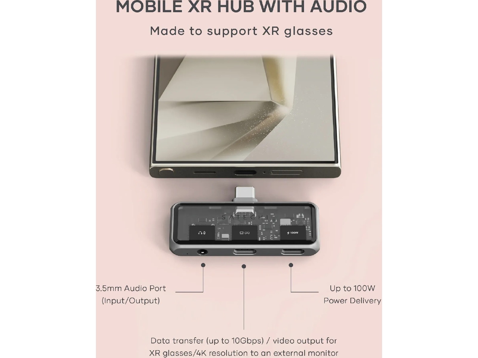 The Satechi Mobile XR Hub comes equipped with a built-in audio jack, allowing you to enjoy crystal-clear sound from your device without the need for an additional adapter. Enjoy high-fidelity sound with 3.5mm audio, immersive 2.1 channel support, and built-in microphone functionality—all with seamless volume control at your fingertips.