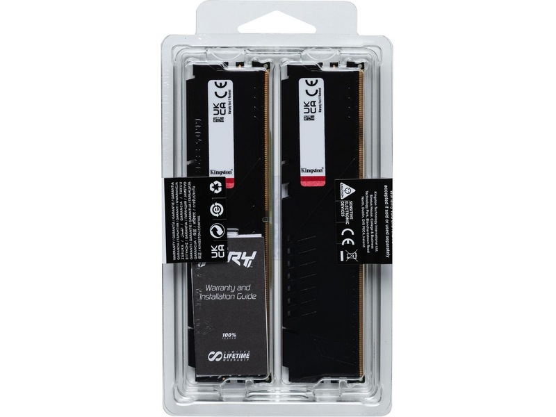 Kingston FURY KF564C32BBEK2-32 er et sæt af to 2G x 64-bit (16GB) DDR5-6400 CL32 SDRAM (Synchronous DRAM) 1Rx8, hukommelsesmodul, baseret på otte 2G x 8-bit FBGA-komponenter pr. modul. Hvert modul understøtter AMD® EXPO v1.1 og Intel® Extreme Memory Profiles (Intel® XMP) 3.0. Den samlede kapacitet for sættet er 32GB. Hvert modul er testet til at køre ved DDR5-6400 med en lav latens timing på 32-39-39 ved 1.4V. SPD'erne er programmeret til JEDEC standard latens DDR5-4800 timing på 40-39-39 ved 1.1V. Hver 288-pin DIMM bruger guldkontaktfingre. JEDEC standard elektriske og mekaniske specifikationer er som følger: