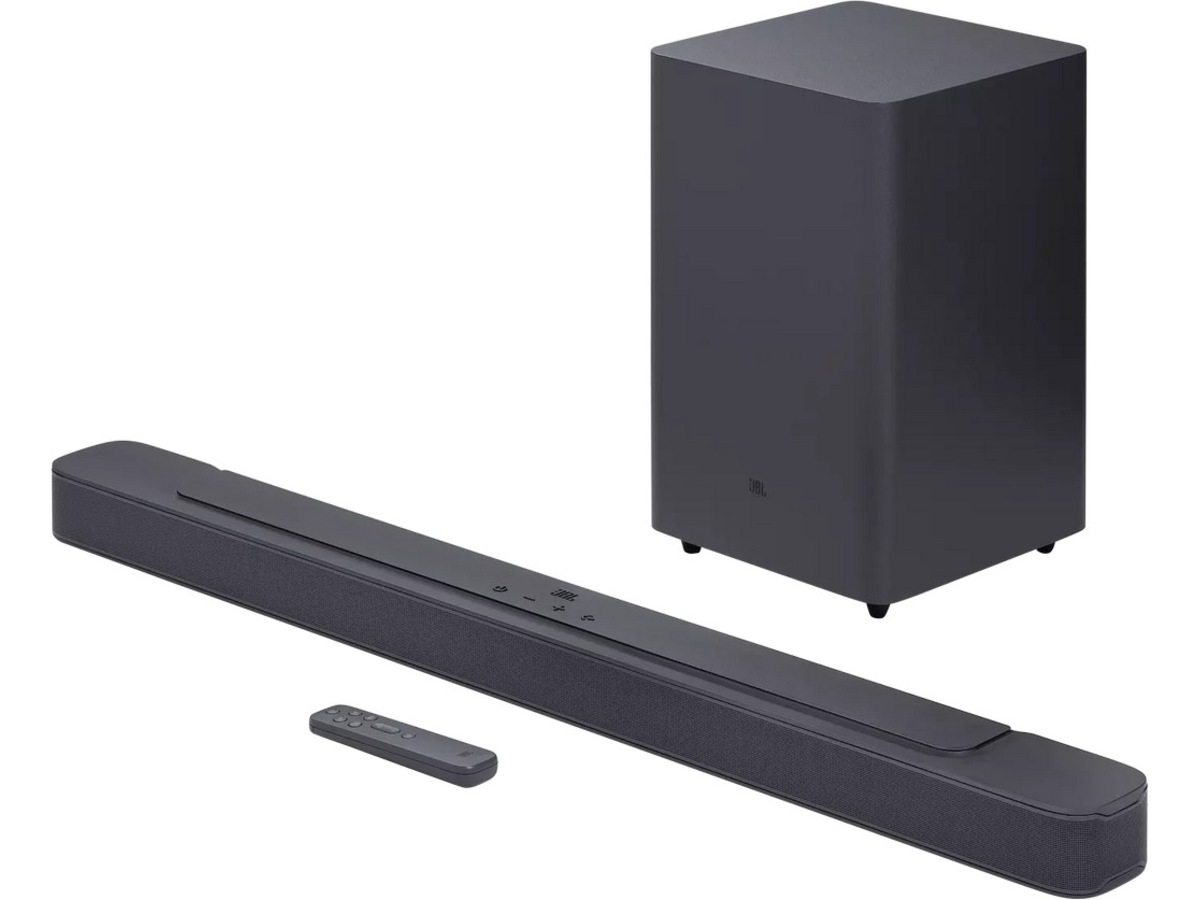 Fyld stuen med lyd. JBL Bar 2.1 Deep Bass soundbar forvandler din stue til en biografsal eller et stadion.