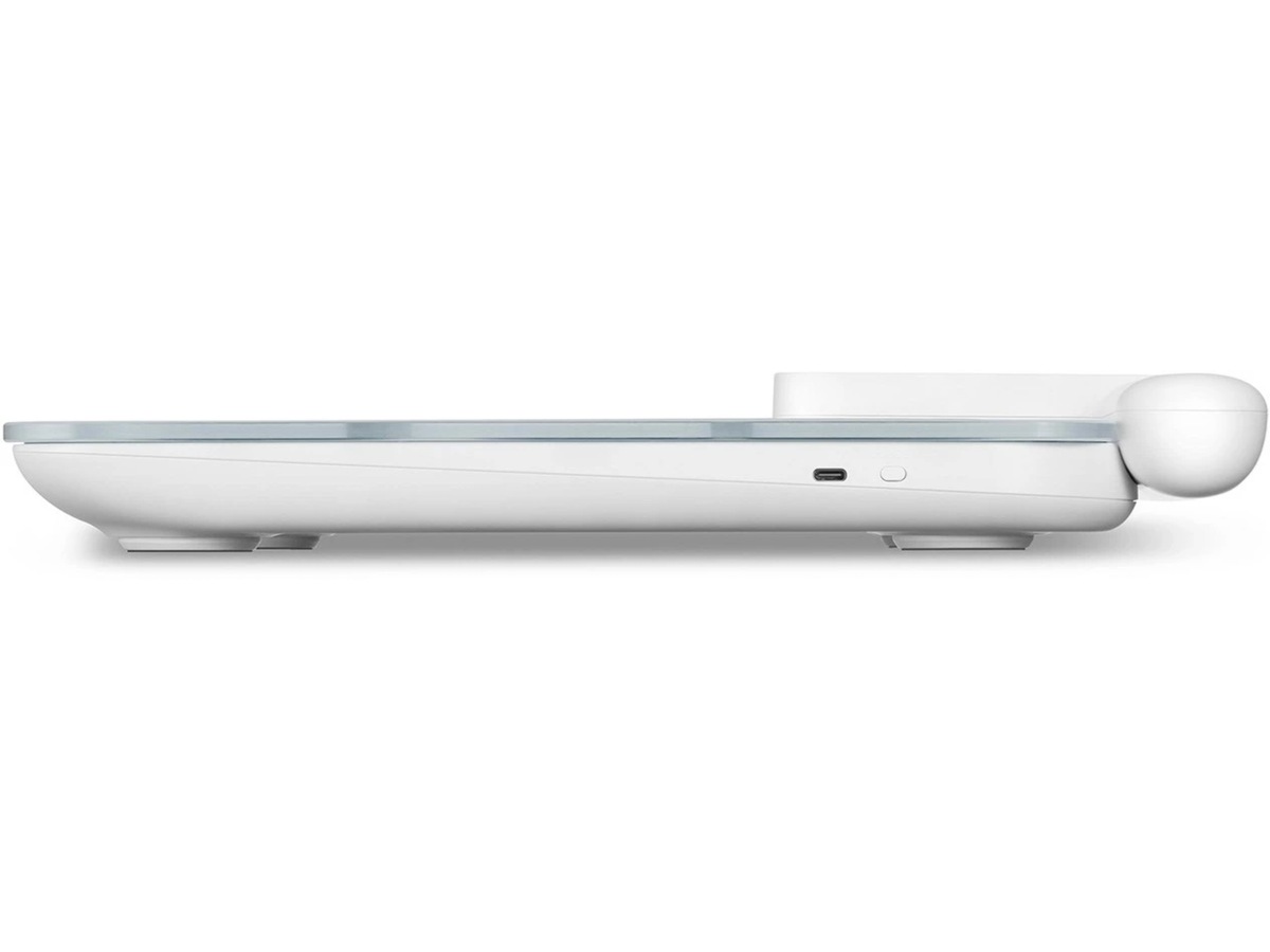 PureSense-vægten har en farverig LCD-skærm og funktioner såsom automatisk aktivering og deaktivering. Dens kompakte størrelse og moderne design gør den nem at bruge og opbevare. Vægten oplades med et USB-C-kabel og har en imponerende standbytid på op til 8 måneder på en enkelt opladning.
