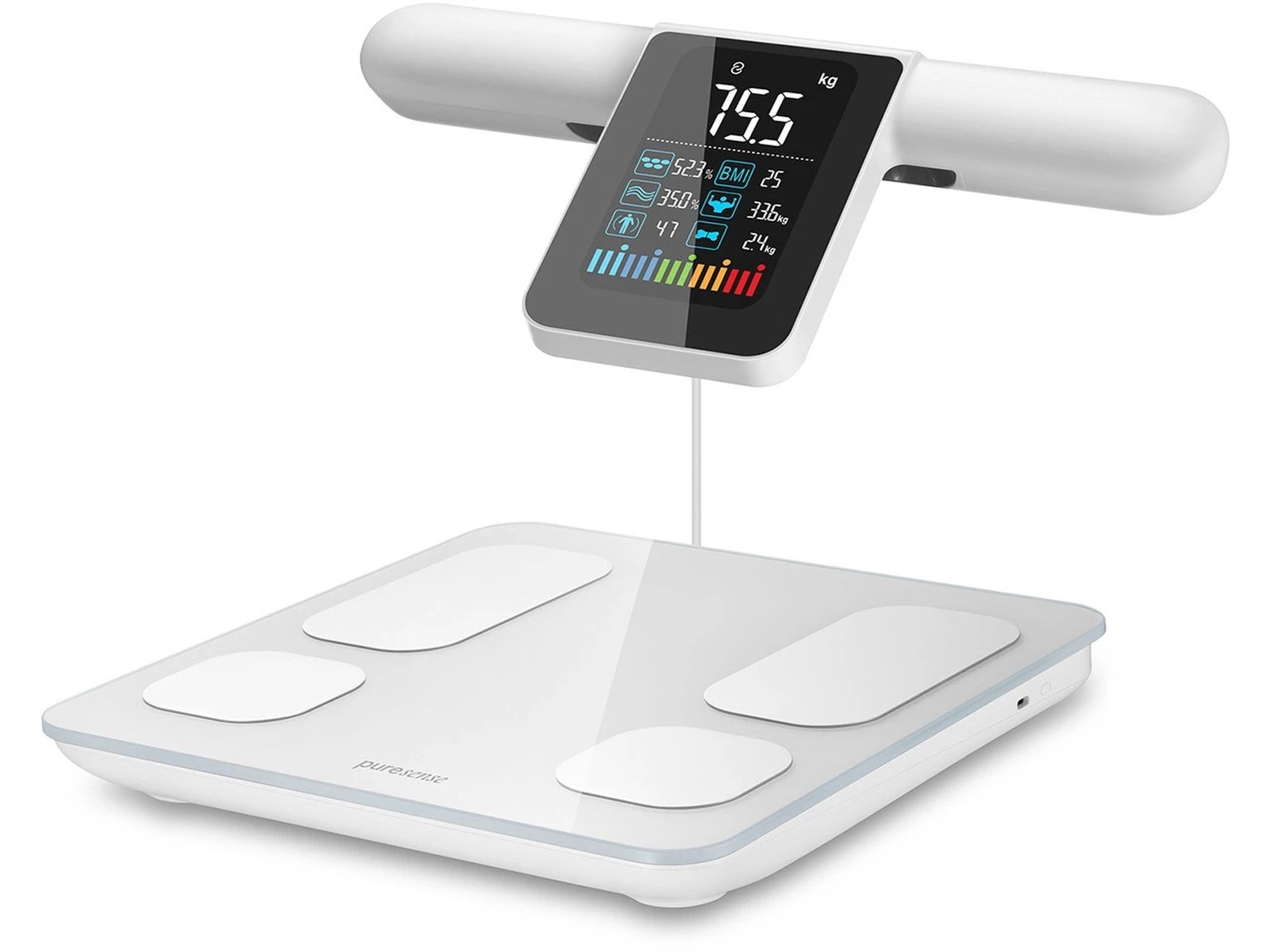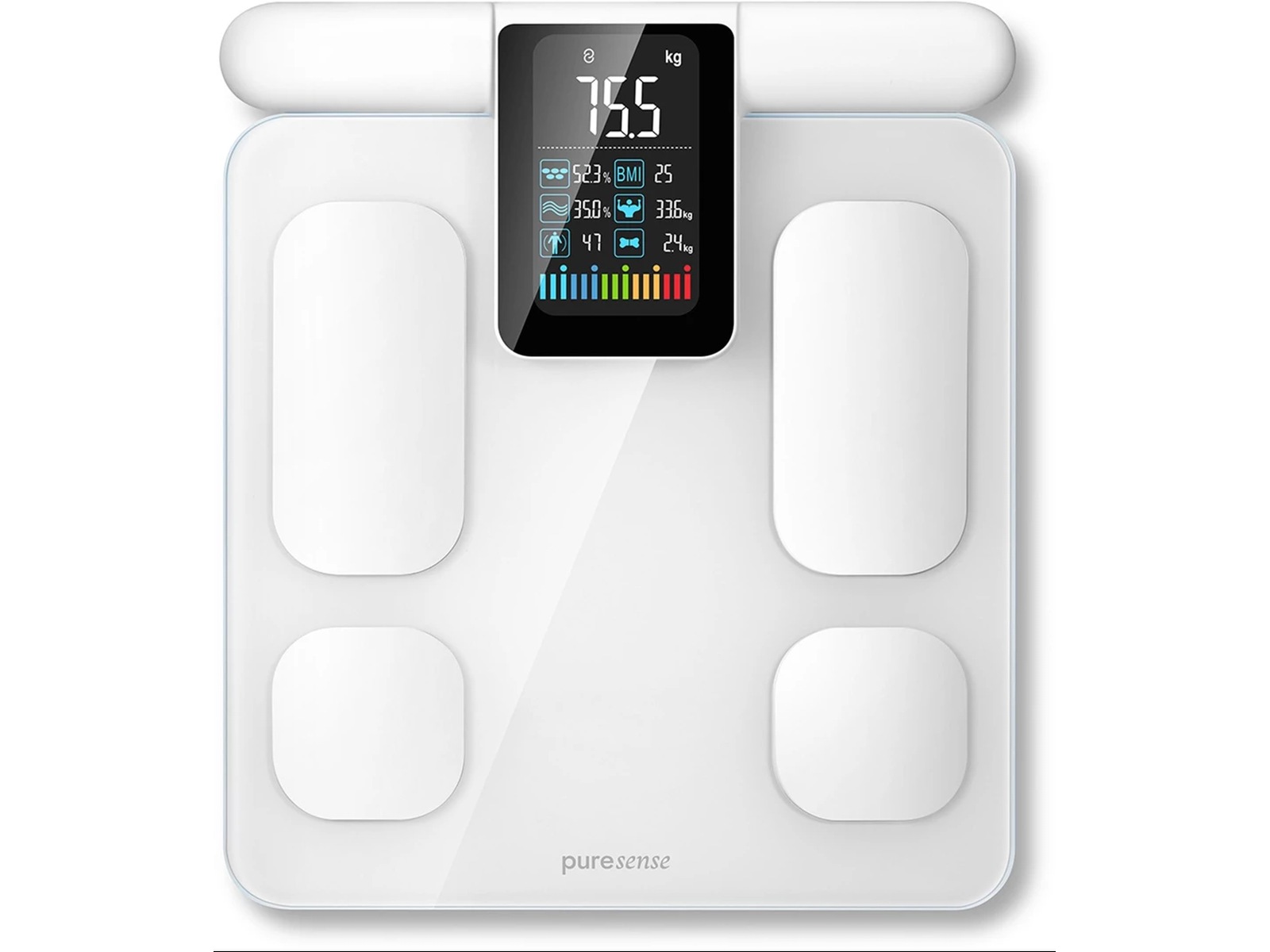 Med denne smarte kropsvægt fra PureSense kan du få et detaljeret billede af din kropssammensætning. Med over 20 forskellige typer kropsmål går vægten langt ud over simpel vægtmåling. Den registrerer vægt, BMI, kropsfedt, muskelmasse, knoglemasse, proteinniveauer og kropsvand - alt sammen for at give dig et omfattende billede af dit helbred.