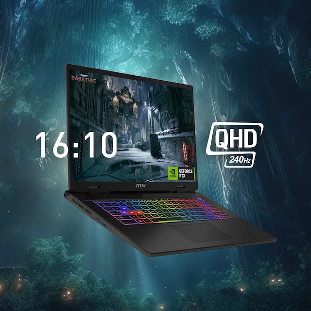 Med en 240Hz QHD+ skærm på IPS-niveau, der dækker 100 % DCI-P3-farverum, kan du nyde skarpt, levende indhold i den glatteste kvalitet. Displayet med det gyldne snit på 16:10 udvider visningen yderligere, hvilket giver en visuel oplevelse i topklasse.
