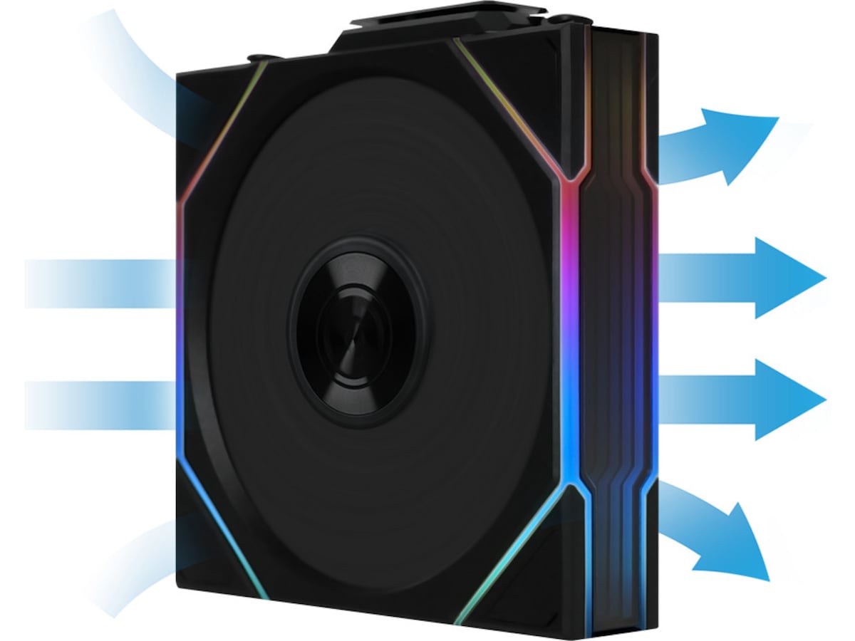 UNI FAN TL Wireless bruger LCP-materiale til vifterne, en kobber middelaksel og FDB-lejer med 9 tætsiddende vinger (0,65 mm mellemrum), hvilket sikrer et slående udseende uden at gå på kompromis med ydeevnen.