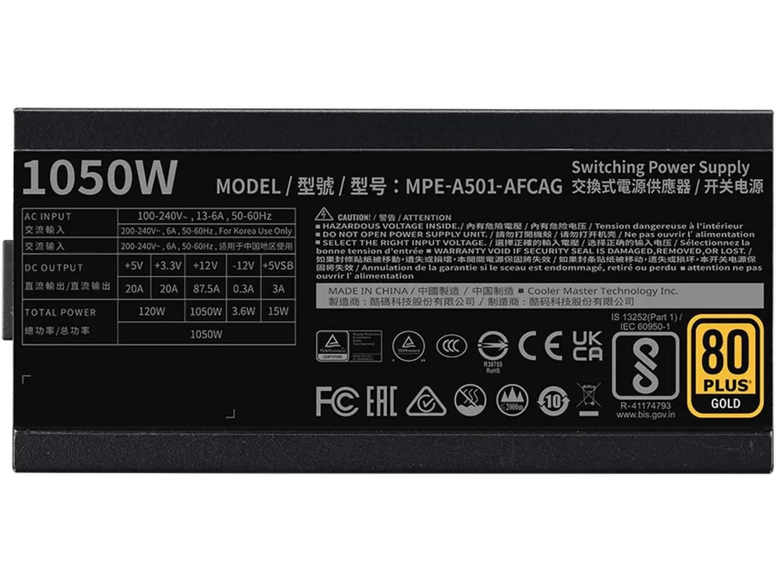 Efficiency has always been one of the most important factors for users when choosing their power supply unit. While there are a range of efficiency options, 80 PLUS Gold has been the ideal choice for the last several years and continues to be seen as the standard for much of the world. The MWE Gold 1050/1250 V2 ATX 3.1 features 80 PLUS Gold certification, guaranteeing 90% efficiency at typical load.
