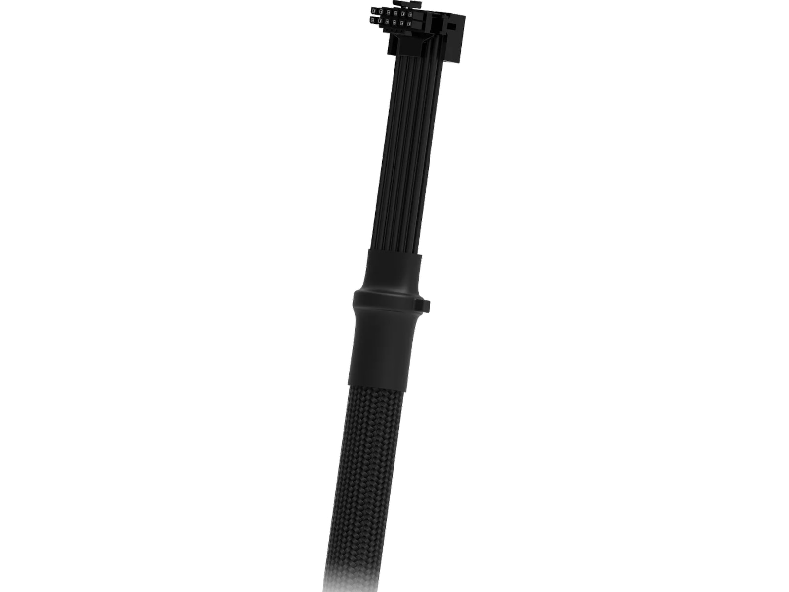 Et 12+4pin PCIe 5.0 stik med en 90 graders vinkel for at forhindre unødvendig bøjning og forbedret fleksibilitet for at øge brugervenligheden og sikre en langvarig forbindelse.