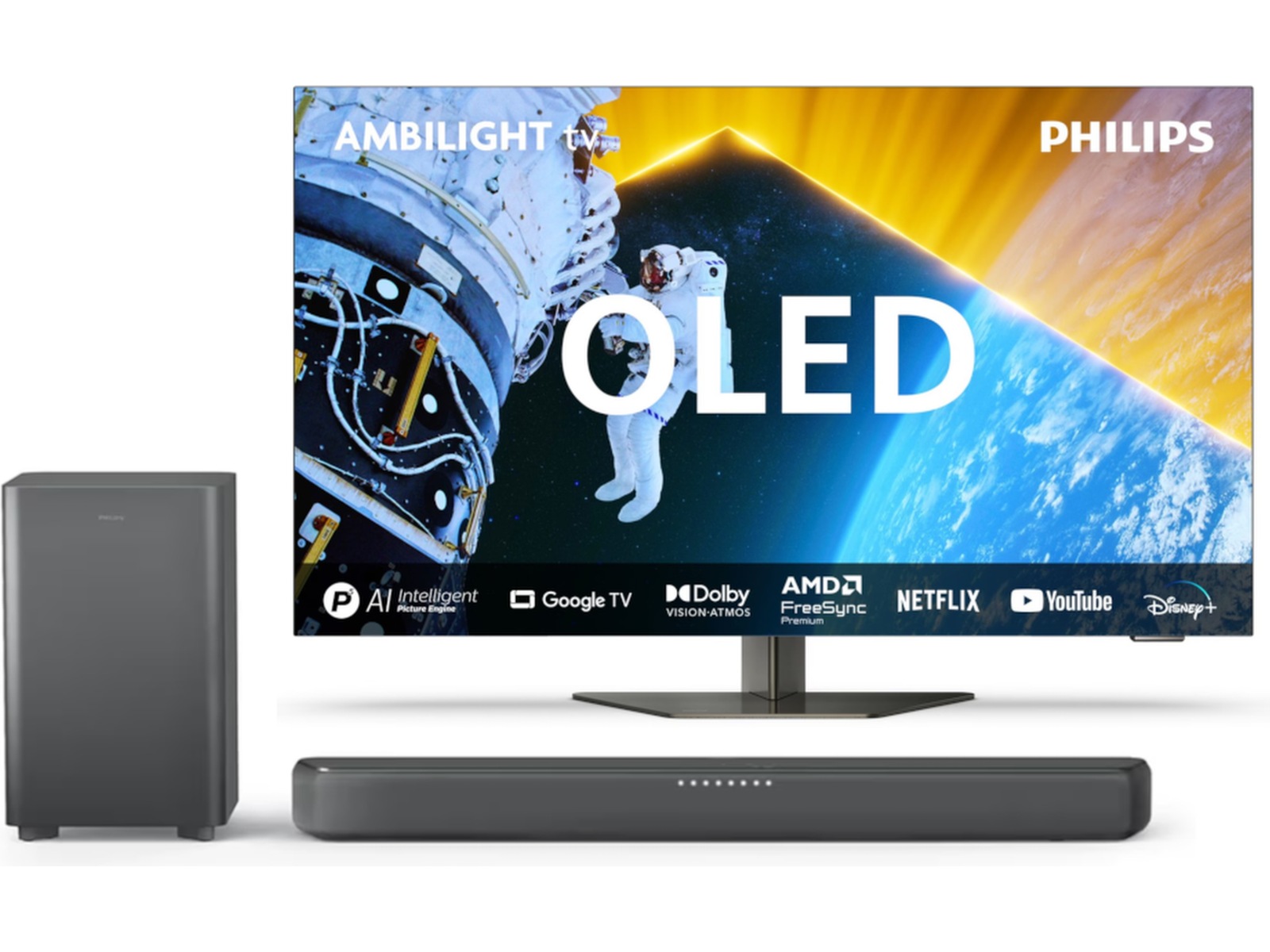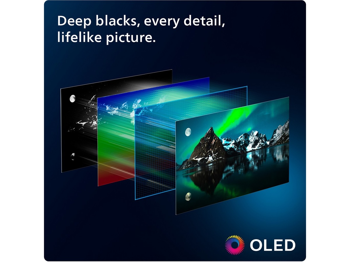 Sunrise Alarm, CalMAN autokalibreringssupport, One touch Play, Ambilight FTI Animation, FreeSync Premium, Adaption til vægfarven, G-SYNC Compatible, AmbiSleep, Indbygget mikrofon, Remote Control Pass Through |