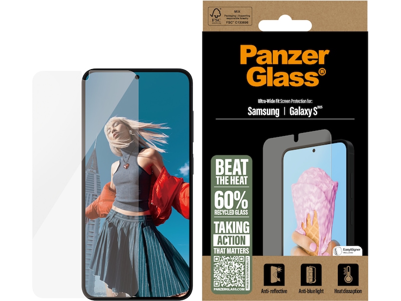 Anti-reflekterende? Ja! Anti-blåt lys? Ja! Køling og varmeafledning? Ja! Ridse- og stødfast? Ja! Denne nye skærmbeskytter fra PanzerGlass® tager øjen- og telefonbeskyttelse til det næste niveau. Det minimerer refleksioner fra solen og kunstig belysning, så du altid kan se, hvad der er på din skærm, og reducerer det stærke blå lys, som kan forårsage anstrengte øjne og træthed. Den spreder endda varme for at holde din varme telefon kølig, når solen brænder. Og hvis du er bekymret for fingeraftrykslæsbarheden, kan du være rolig: Skærmbeskytteren sikrer 100 % kompatibilitet med din skærms ultralyds-fingeraftrykslæser, så du kan være sikker på, at din telefon låses problemfrit op hver gang.