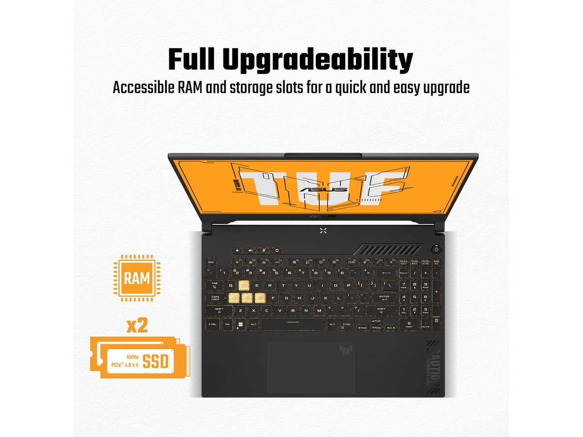 Spring direkte ind i spillet med TUF Gaming A15. Det er let at streame og multitaske takket være en AMD® Ryzen™ 7 7435HS og 16 GB lynhurtig 4800MHz DDR5 RAM i Windows 11. Udnyt alle gamingkræfterne i GeForce RTX™ 4060 Laptop GPU'en med en dedikeret MUX Switch. Når dit spilbibliotek bliver fyldt, er det let at opgradere lagerkapaciteten takket være en ledig M.2 NVMe SSD-port.
