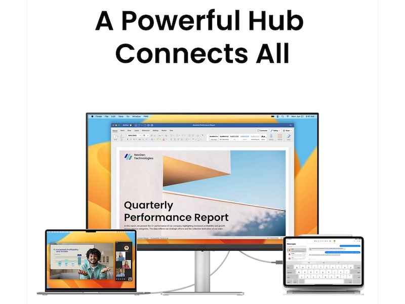 - Udvid din MacBooks visning med ensartede Mac-farver med kun ét kabel
