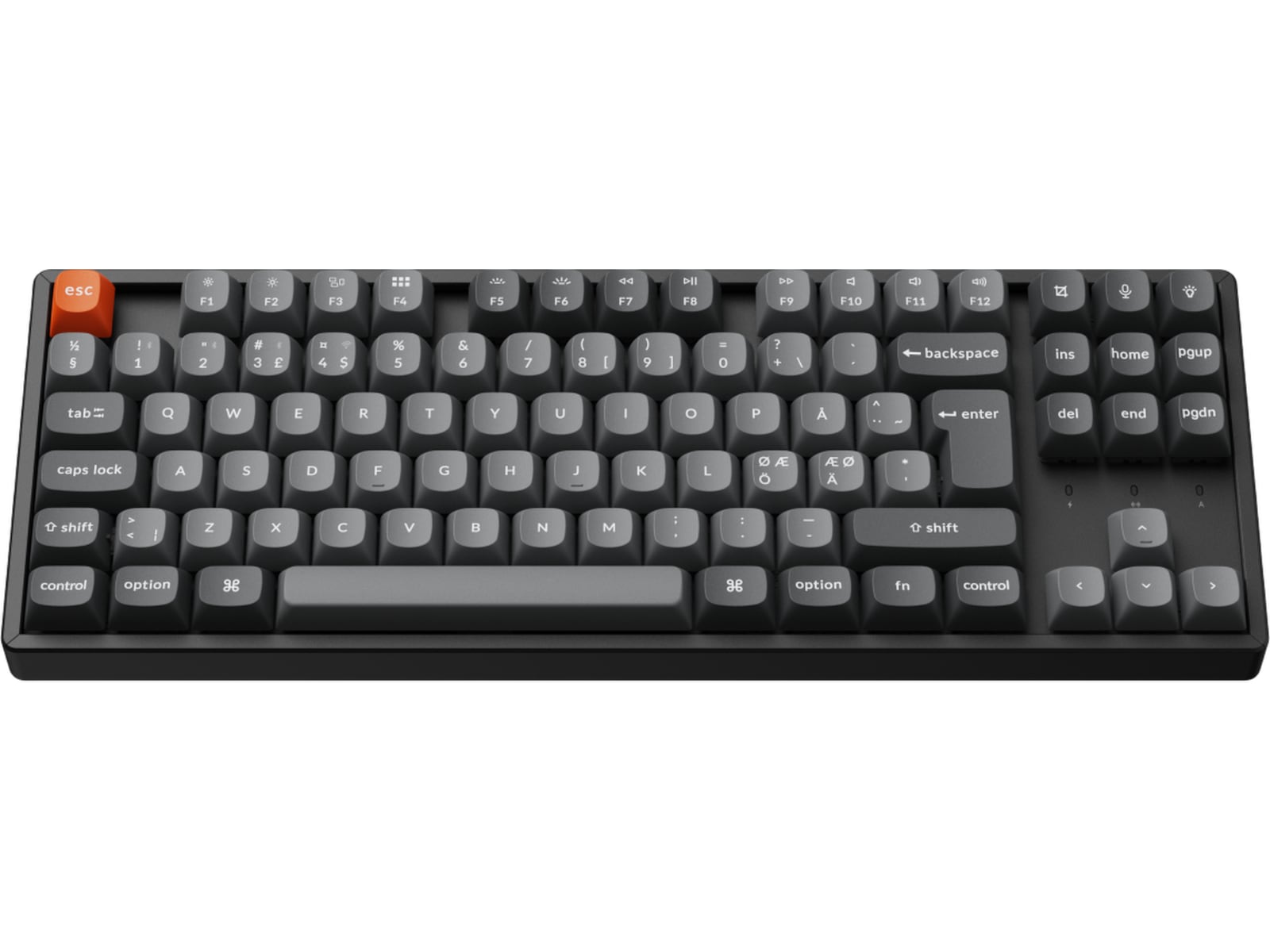 Tilbyder et Mac-layout, mens det stadig er kompatibelt med Windows. Det skiller sig ud på markedet ved at levere de samme multimedie- og funktionstaster som Apple-tastaturer til Mac-brugere, men med forbedret taktile feedback.