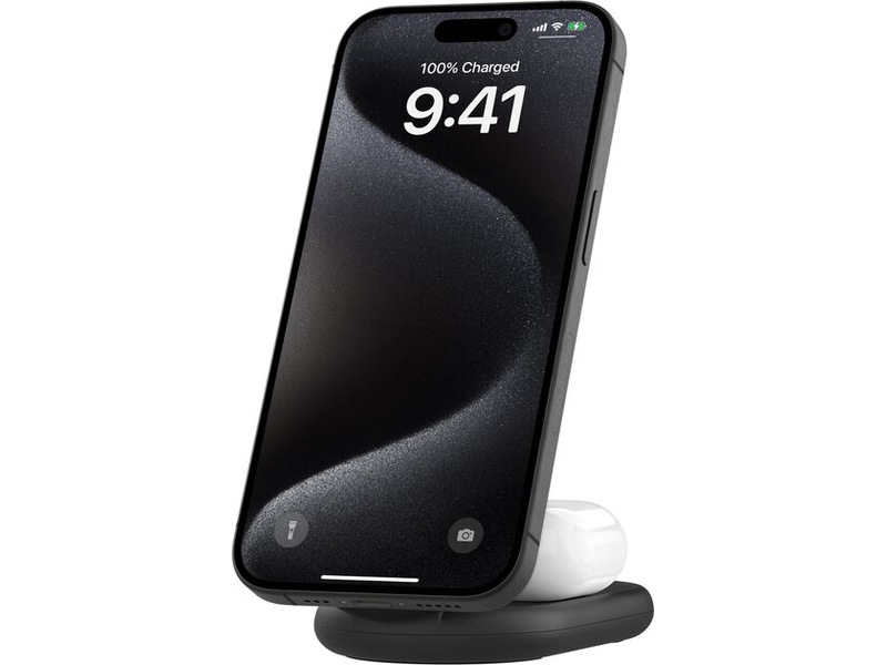 Få 15W hurtig trådløs opladning til din iPhone 16/15/14/13/12 og 5W til dine AirPods med vores ultra-praktiske foldbare opladningsstand, der er kompatibel med MagSafe. Ved at udnytte Qi2-teknologi tilbyder opladepladen en sikker, justeret magnetisk forbindelse til iPhone og op til dobbelt så hurtig opladning.**