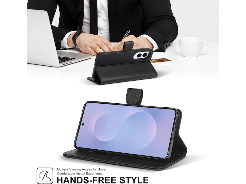 Coveret er meget let og giver god holdekomfort, når du bruger din smartphone. Fronten kan foldes til et stativ, så du kan se film eller deltage i videomøder i en perfekt vinkel! Coveret har en lomme til tre kort.