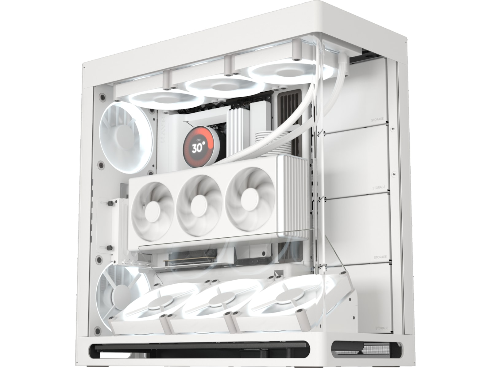 HAVN Hybrid Structure placerer GPU'en foran og i midten, fuldt fremvist bag det panoramiske Unisheet-glas. Dette design understreger ikke kun dine nøglekomponenter, men forbedrer også GPU-luftstrømmen for optimal ydeevne.