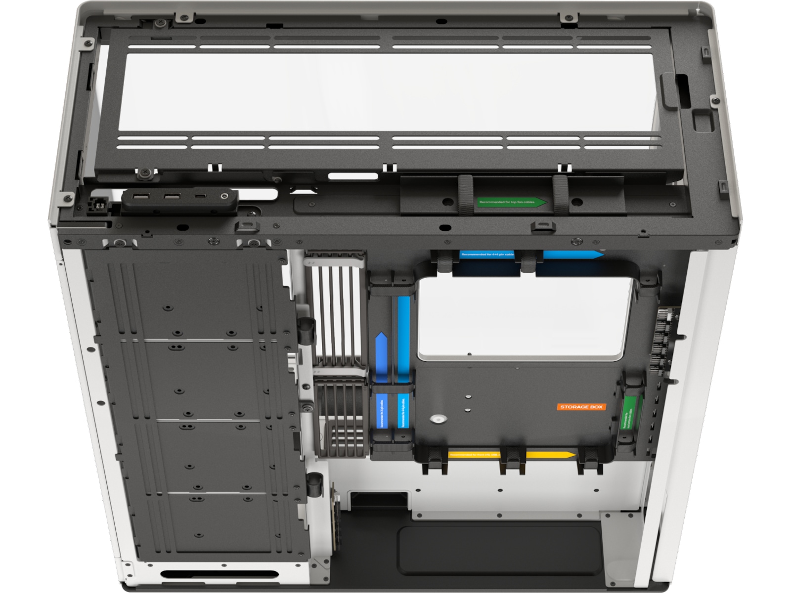SimpliCable-routingsystemet og ventilatorhubben har riller fra top til bund, hvilket gør kabelstyringen ubesværet ren og giver din opsætning et perfekt, organiseret udseende.