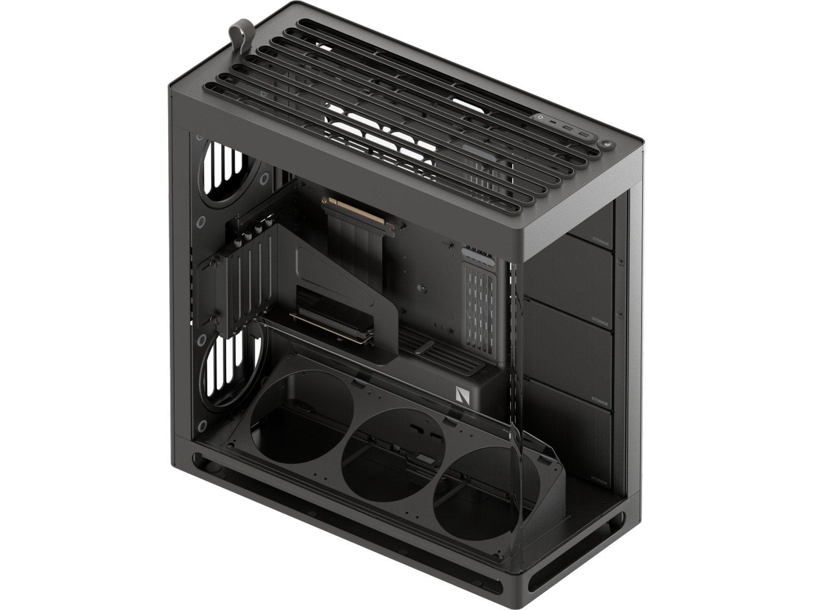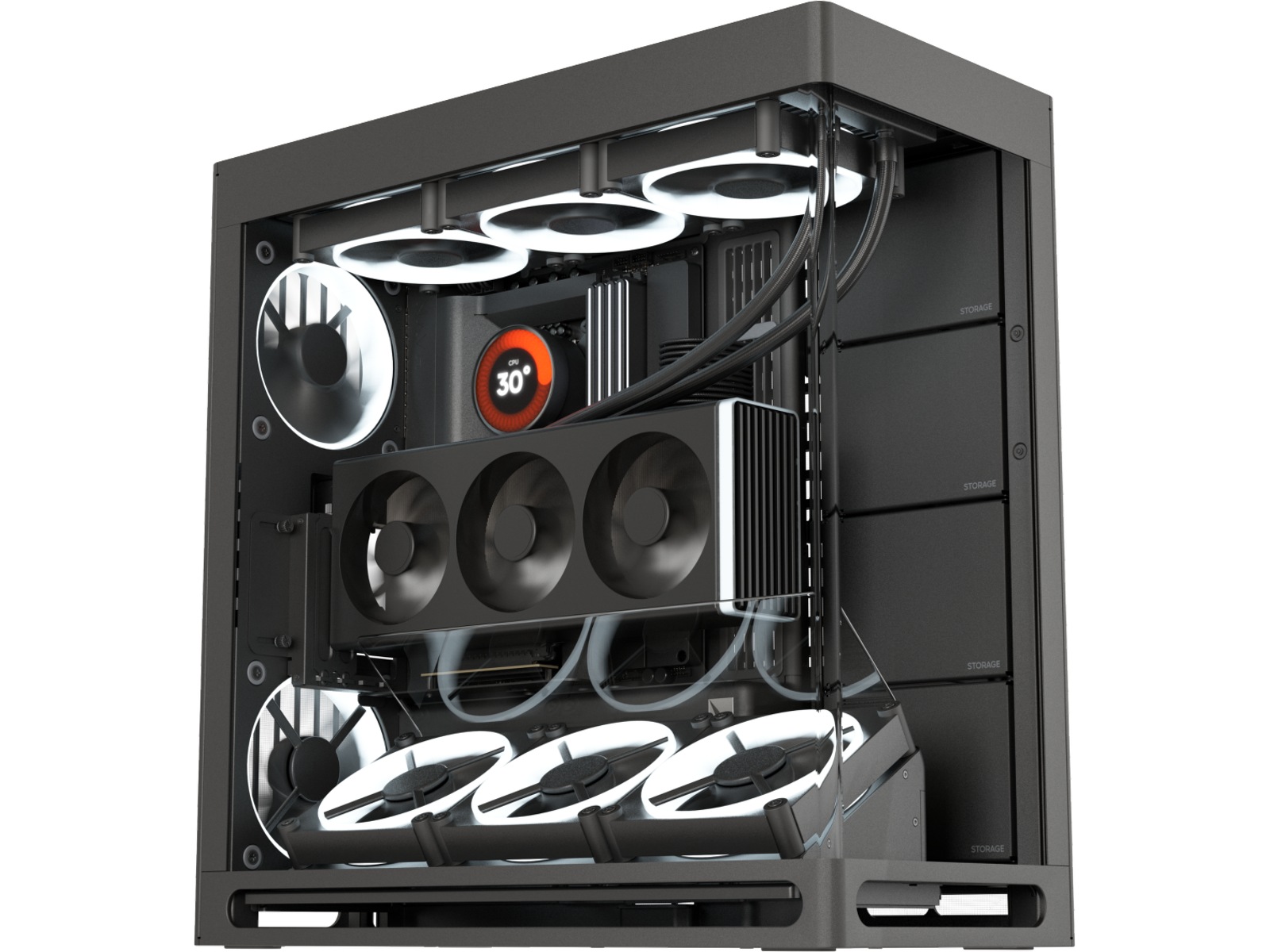 - Forbedret termisk ydeevne med tilpasset ventilation, der understøtter op til 11 x 140 mm blæsere og 420 mm radiatorer ovenpå og på siden.