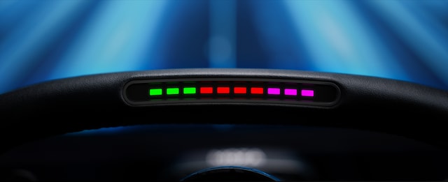 Denne topmonterede RPM-indikator henter inspiration fra superbilhjuldesign. Med 10 LED'er med høj lysstyrke, der kan tilpasses til 16,7 millioner farver, kan den også fungere som en flagsignalindikator.