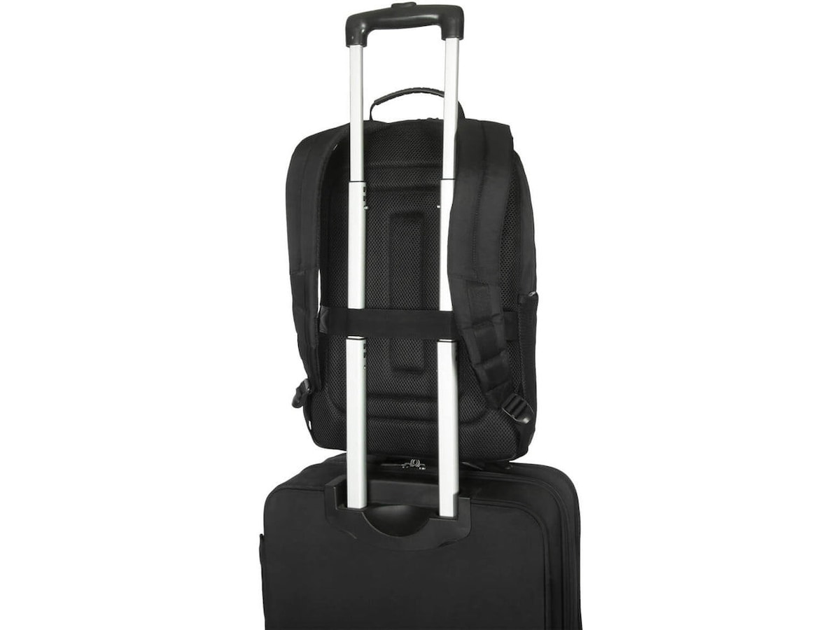 For en komfortabel bæreoplevelse inkluderer den justerbare konturpolstrede skulderstropper, et forstærket top-håndtag og et åndbart rygpanel for at hjælpe med at holde dig kølig. Alle disse funktioner er parret med Targus' forventede niveau af laptopbeskyttelse, hvilket gør den perfekt til daglig brug.