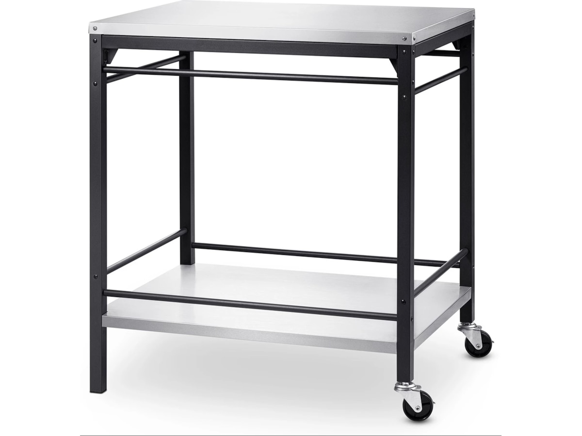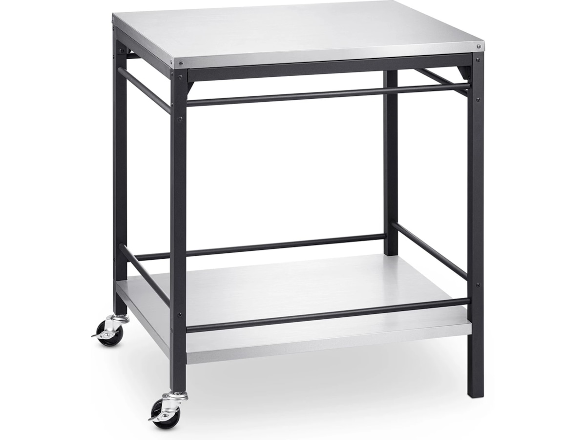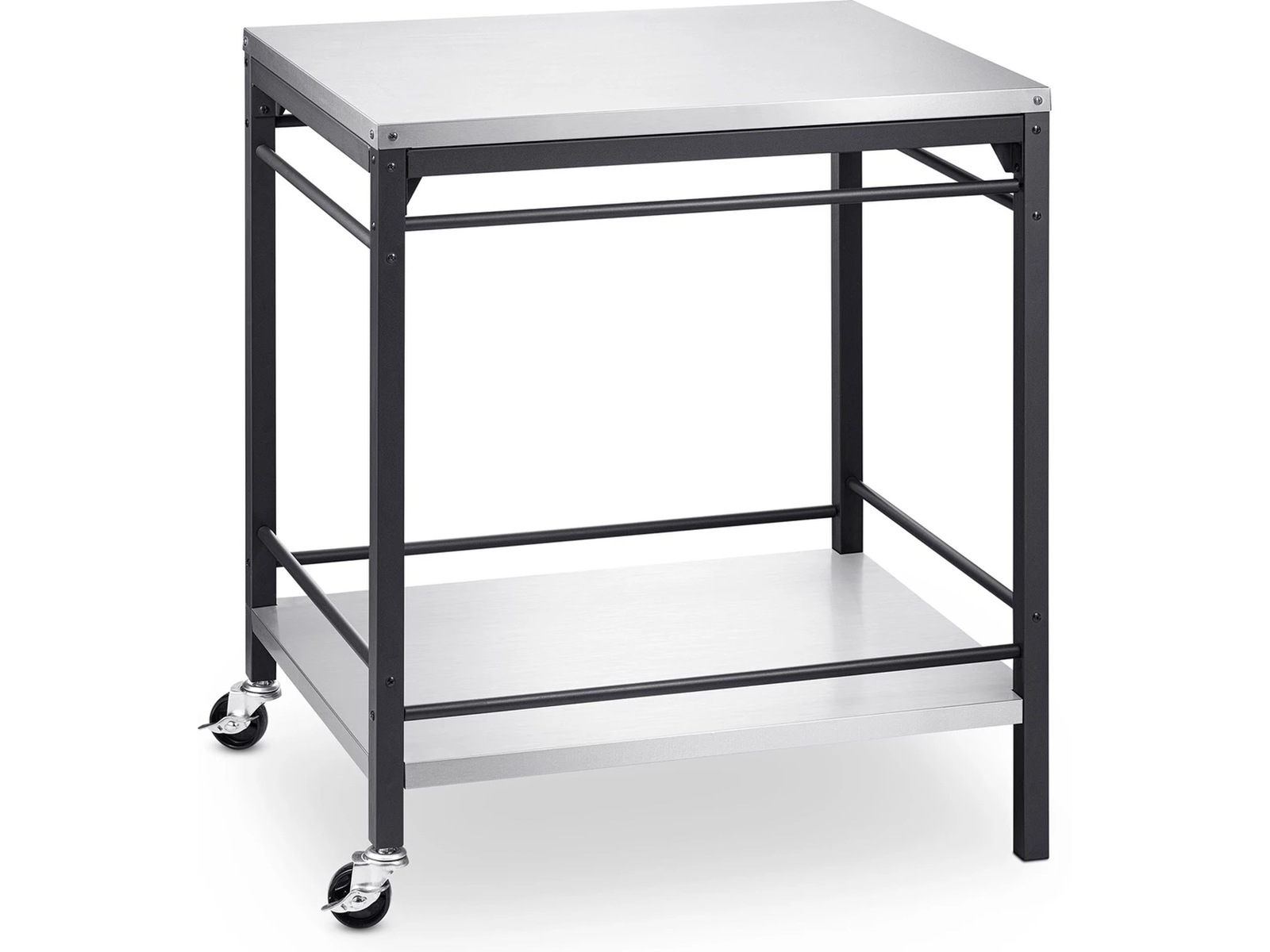 Austin og Barbeque Sidebord i rustfrit stål passer til udekøkkenet og til brug ved siden af grillen på terrassen. Her kan du forberede maden, aflaste under madlavningen og opbevare redskaber. Sidebordet leveres med en hylde og en bordplade, begge i slidstærkt og rengøringsvenligt rustfrit stål. Sidebordet er også udstyret med hjul for nem flytning.