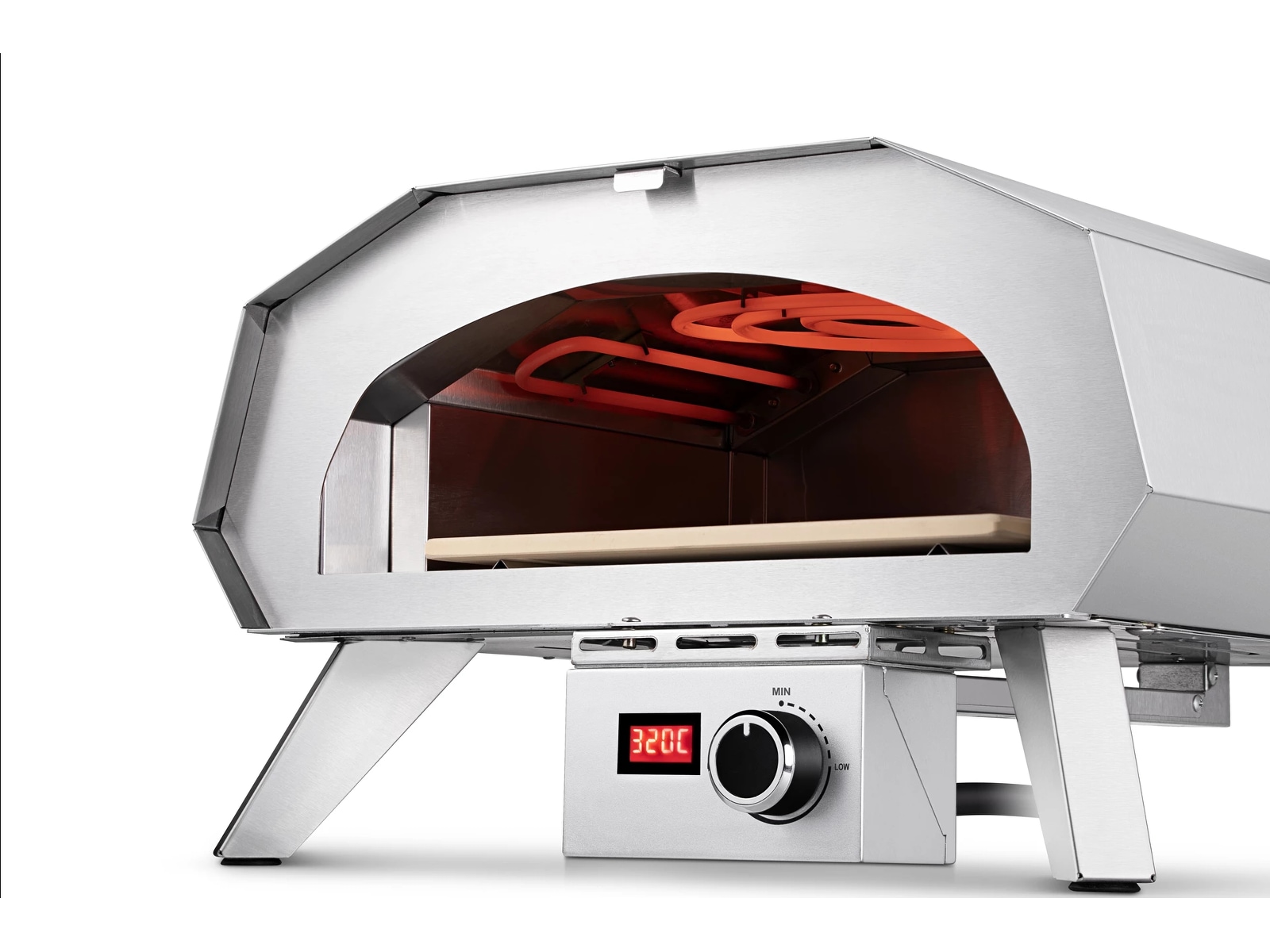 Den 12 tommers elektriske pizzaovn fra Austin and Barbeque har et kompakt design og optager ikke mere plads end nødvendigt. Den passer perfekt på balkonen eller terrassen og er nem at opbevare til næste grillsæson.