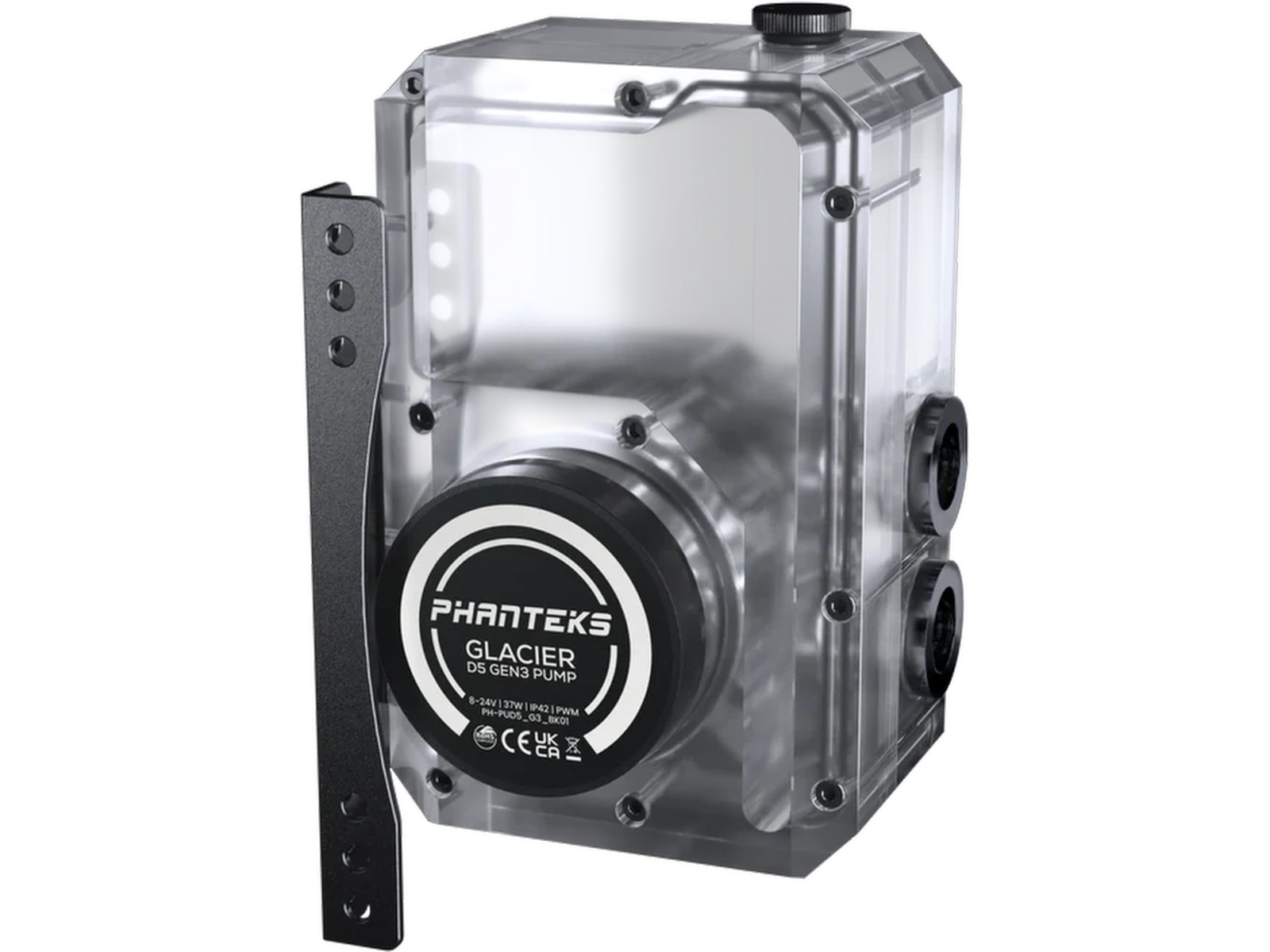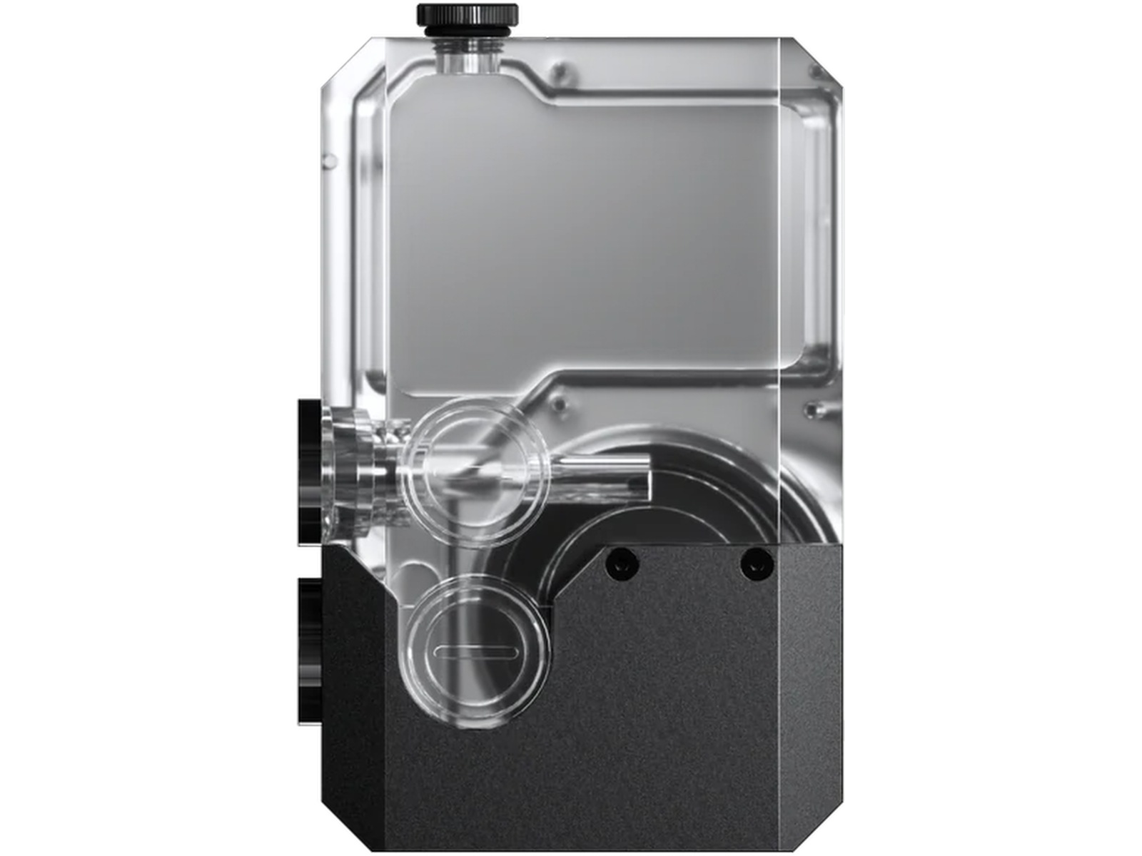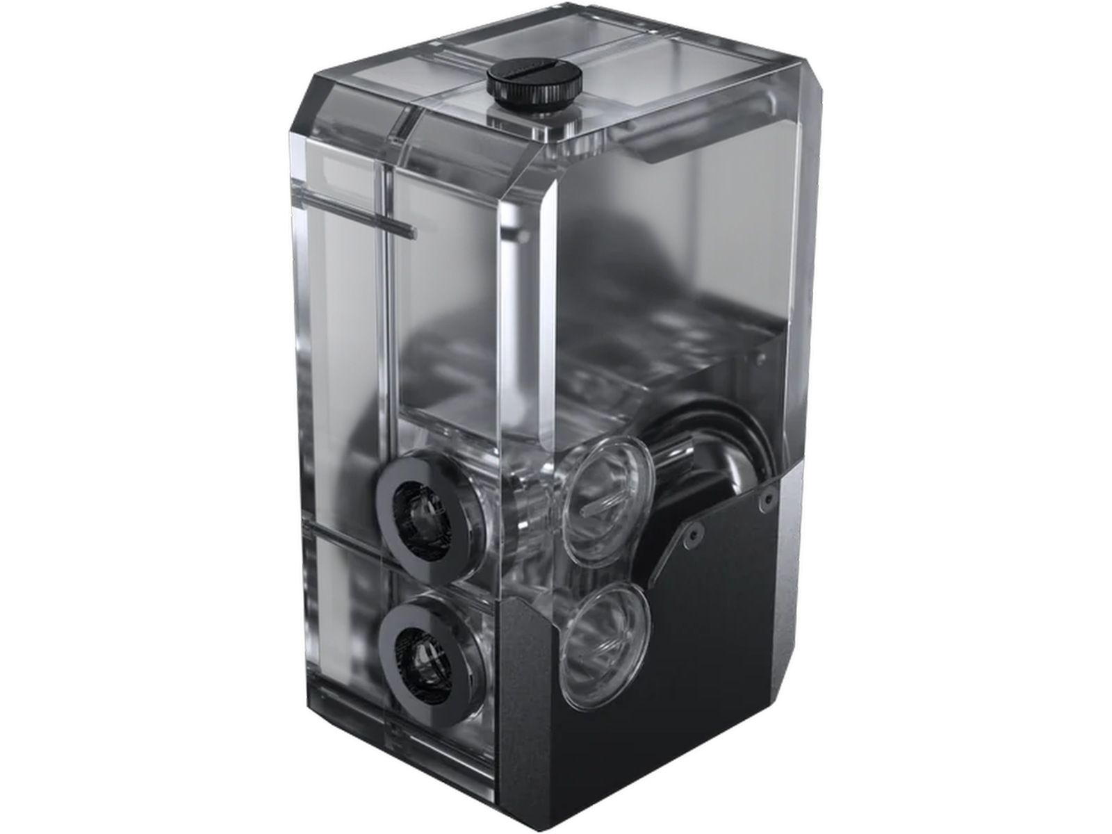 Kernen i dette reservoir er den kraftfulde D5-Gen3 pumpe, sømløst integreret i den robuste akrylkrop. Dens gennemsigtige design viser vandstrømmen fra alle vinkler, hvilket tilføjer både funktionalitet og et visuelt imponerende element til din konstruktion.