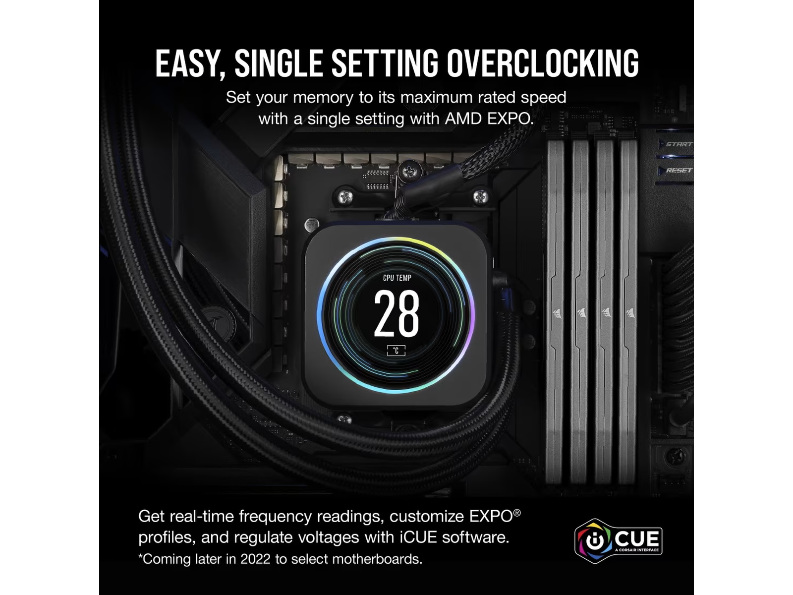 Du har magten og kontrollen. Indbygget spændingsregulering med iCUE-softwarekontrol gør det nemmere, finjusteret output, der giver mere stabil overclocking end nogensinde før.