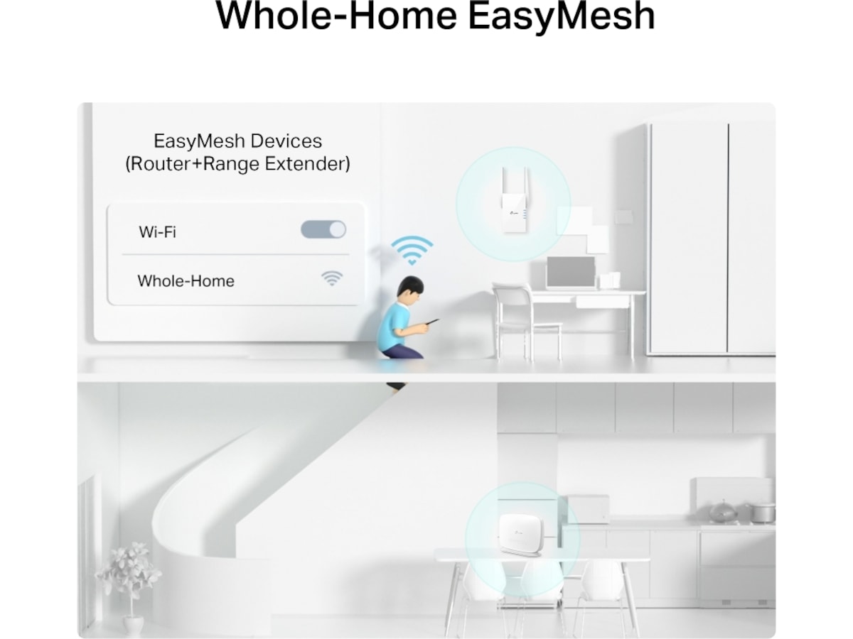 Hvis du har døde zoner derhjemme, kan du blot tilføje en anden EasyMesh-kompatibel router/rækkeudvidelse for yderligere at danne dit helt hjem multi-gigabit mesh WiFi. Slut med at søge efter en stabil forbindelse.
