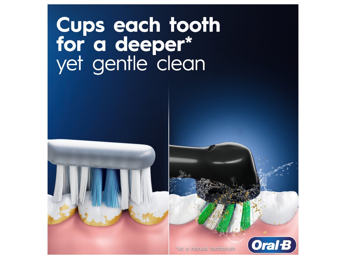 - Unik Oral-Bs 2D-rengøringsteknologi: bevæger sig frem og tilbage og roterer for op til 100 % mere plakfjernelse sammenlignet med en manuel tandbørste