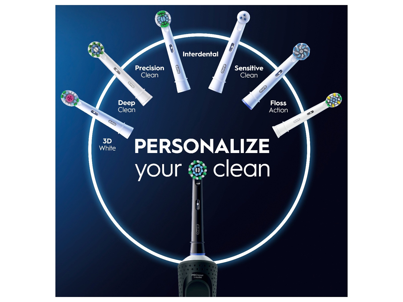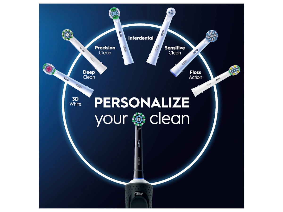 Vitality Pro bruger en kombination af oscillerende og roterende bevægelser for at fjerne op til 100 % mere plak sammenlignet med en manuel tandbørste, og sikrer en grundig rengøring af tænderne.