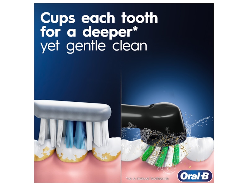 - Unik Oral-Bs 2D-rengøringsteknologi: bevæger sig frem og tilbage og roterer for op til 100 % mere plakfjernelse sammenlignet med en manuel tandbørste