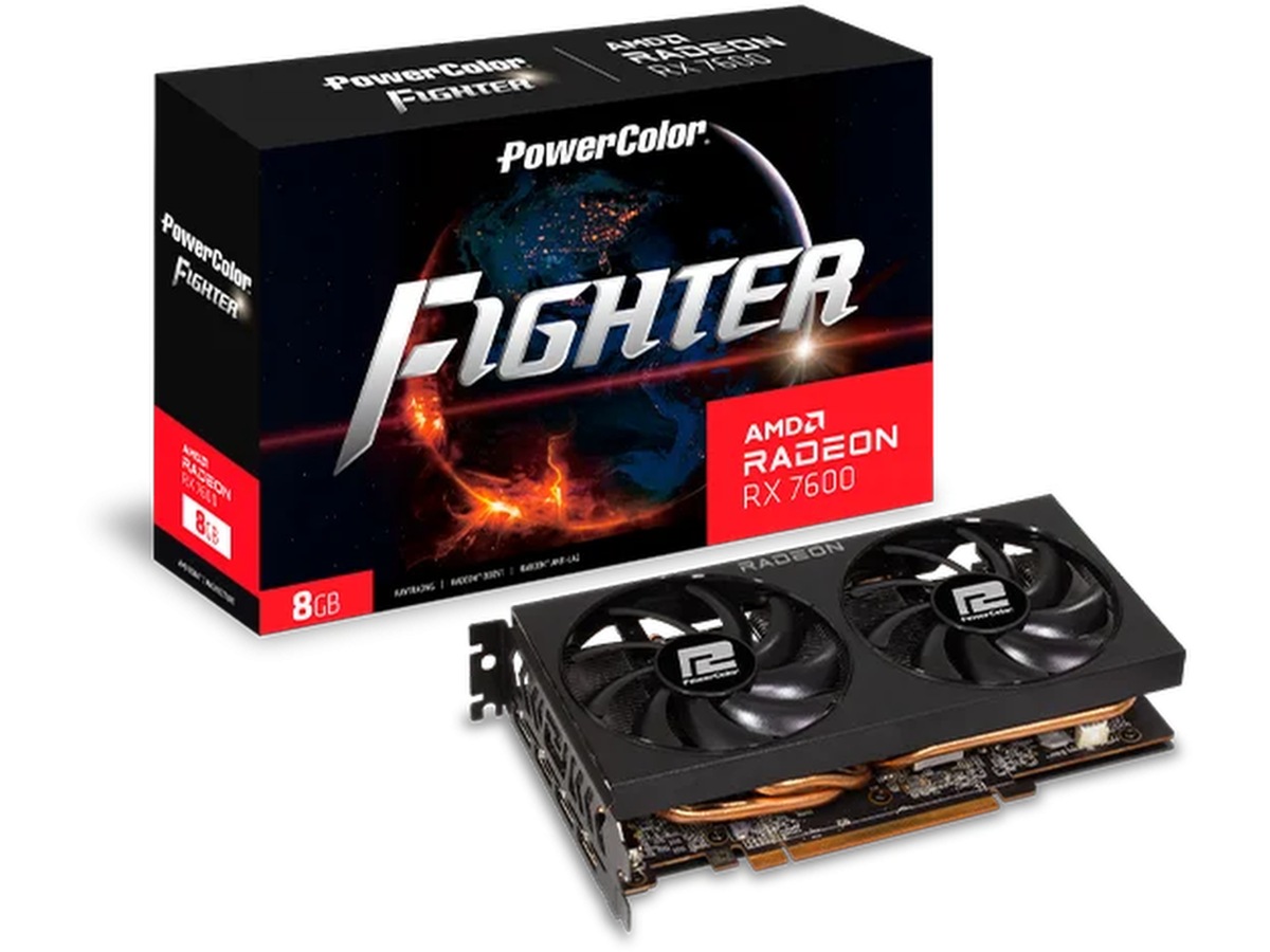 Som en indgangsbillet til at nyde gaming, er PowerColor Fighter Radeon RX 7600 grafikkortet udstyret med et dobbelt 90mm køleviftesystem, en køler med en forstørret varmeafledningsflade og et sæt varmeledninger, der direkte rører ved GPU'en for at forbedre varmeafledningen. Begynd at nyde dit gaming liv med PowerColor Fighter Radeon RX 7600!