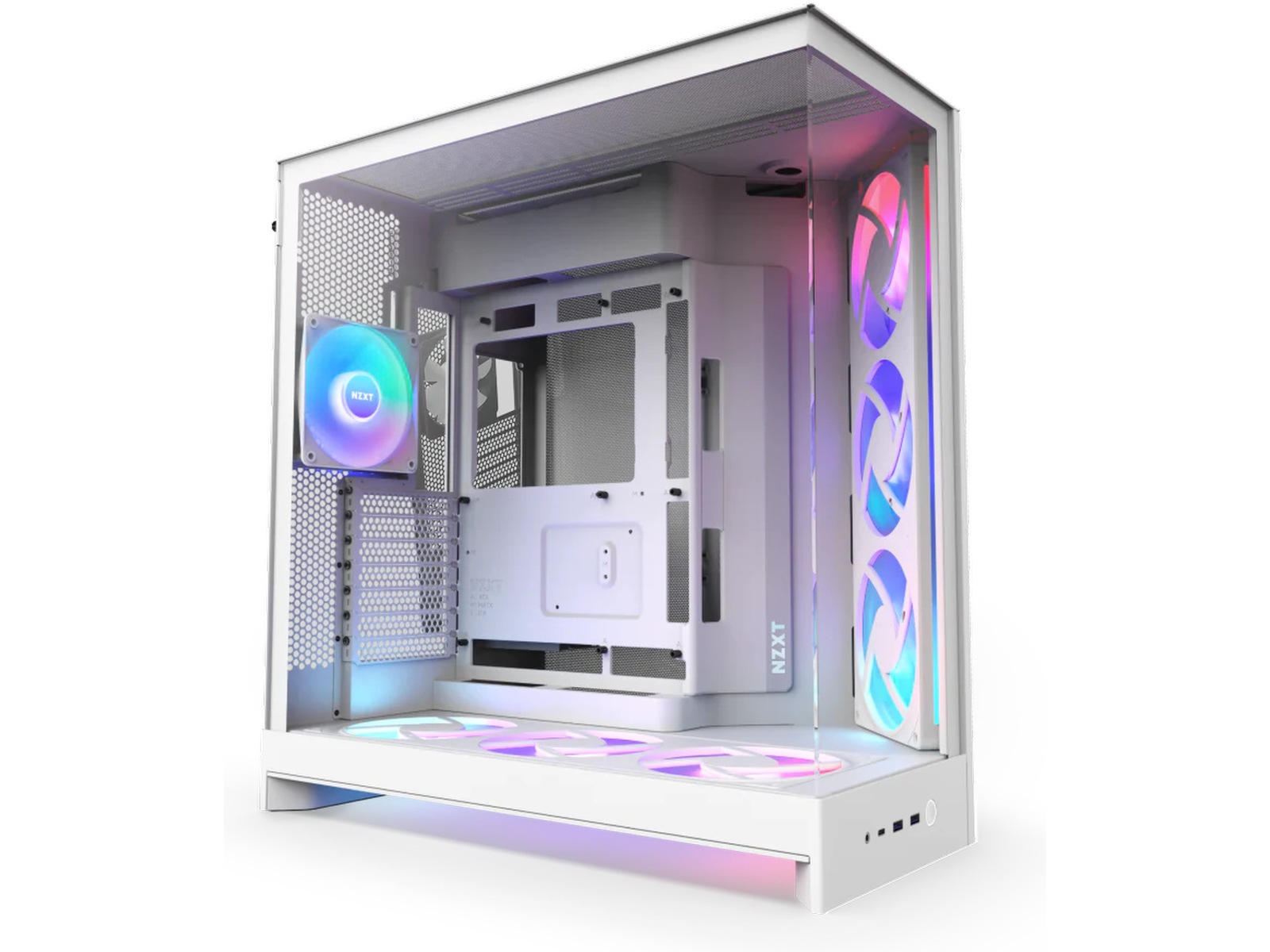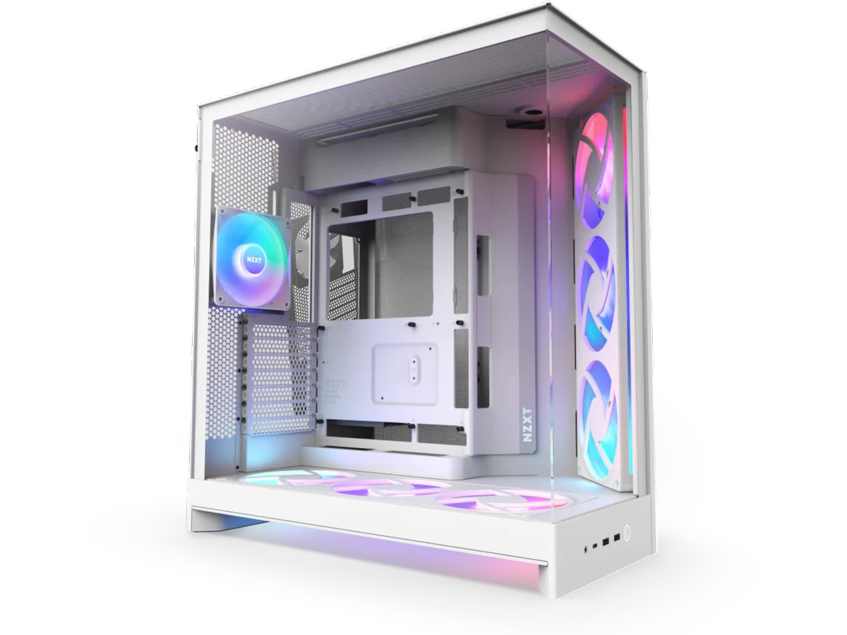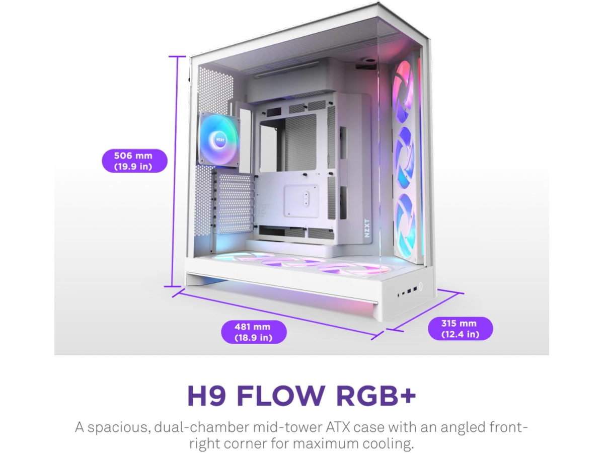 H9 Flow er et rummeligt midt-tårn ATX-kabinet bygget til højtydende builds, der balancerer luftstrøm og æstetik. Dens dobbeltkammerdesign forbedrer køling og kabelstyring, mens perforerede paneler, vinklede ventilatorer og rigelig støtte til blæsere og radiatorer leverer optimal termisk ydeevne.
