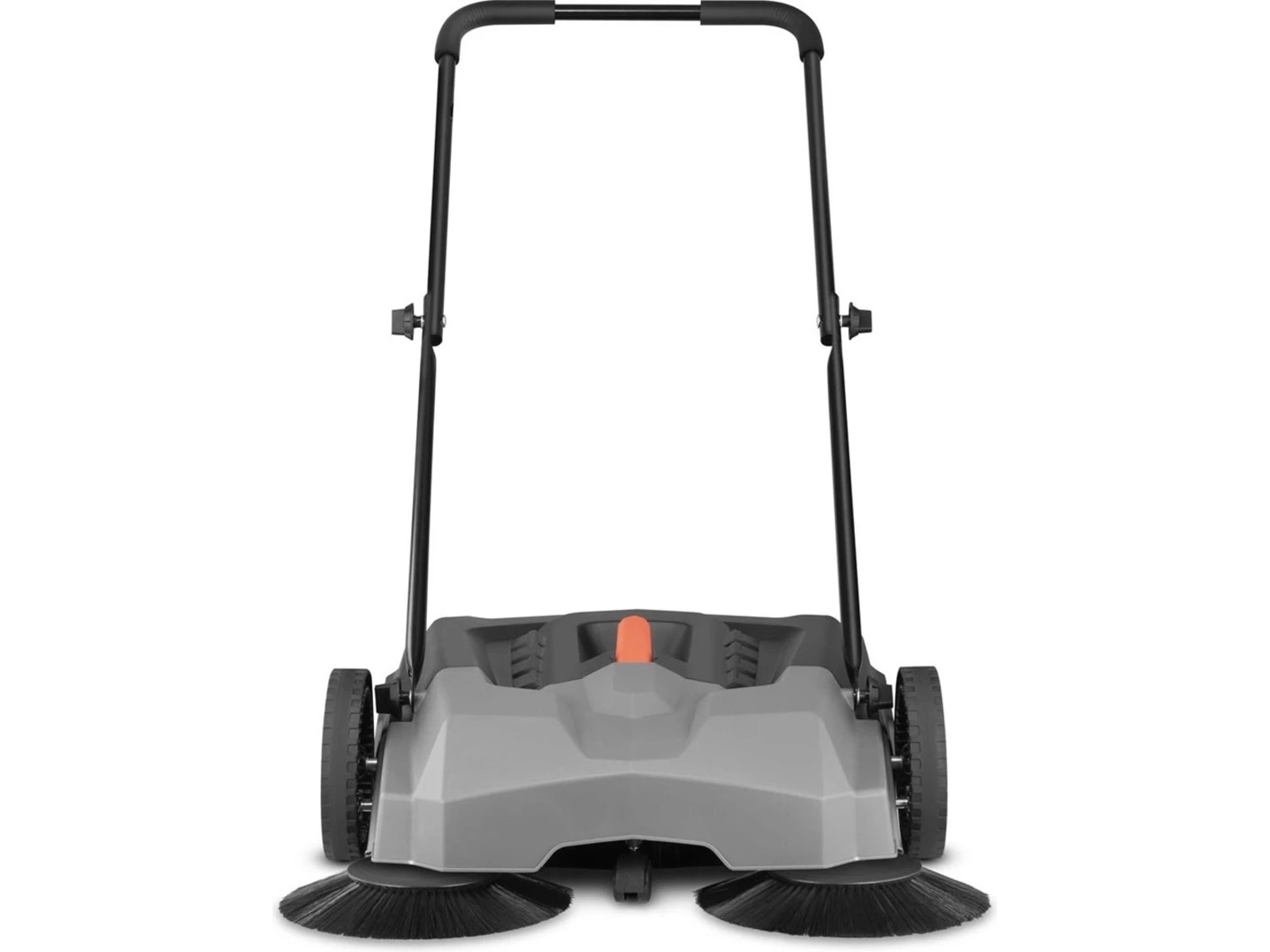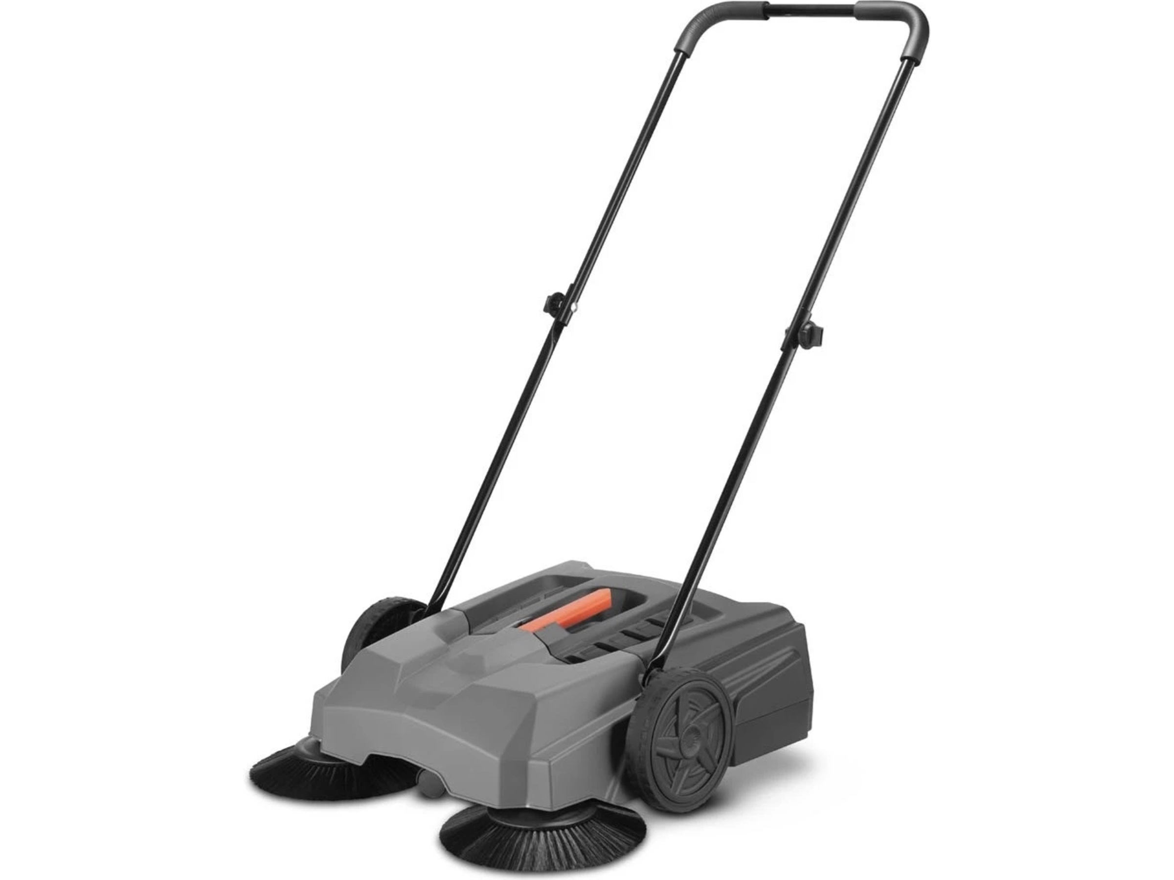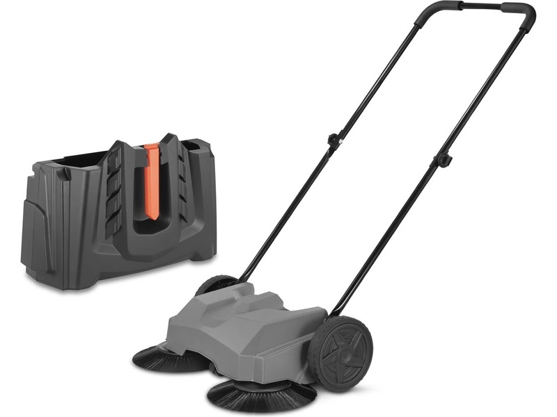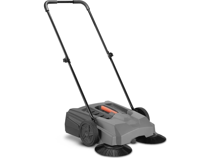 Maskinen er fuldstændig hånddrevet og kræver hverken strøm eller batterier. Det ergonomiske håndtag giver et komfortabelt greb og nem manøvrering – selv ved længere tids brug. En fleksibel og ukompliceret rengøringsløsning.