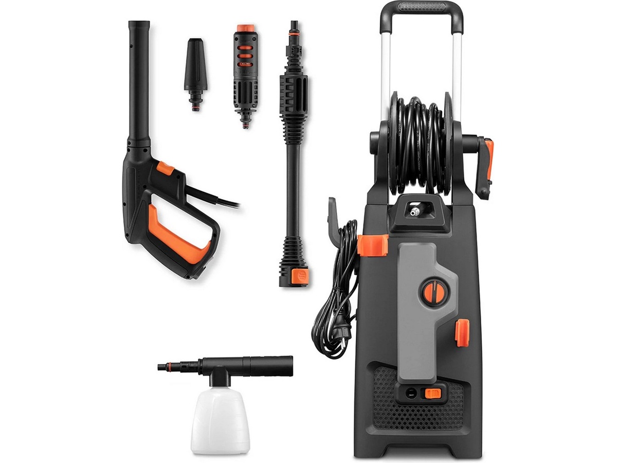 I pakken følger der et turbodyse, et variabelt dyse og en skumflaske til påføring af rengøringsmiddel. Dette tilbehør gør højtryksrenseren perfekt til en række forskellige opgaver, såsom at vaske bilen, terrassen eller fliserne i haven.