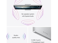 Studio Display. En avanceret 27-tommers 5K Retina-skærm med 12 MP kamera med fokus, mikrofoner i studiokvalitet og seks højttalere.* Kompatibel med alle Mac-computere.